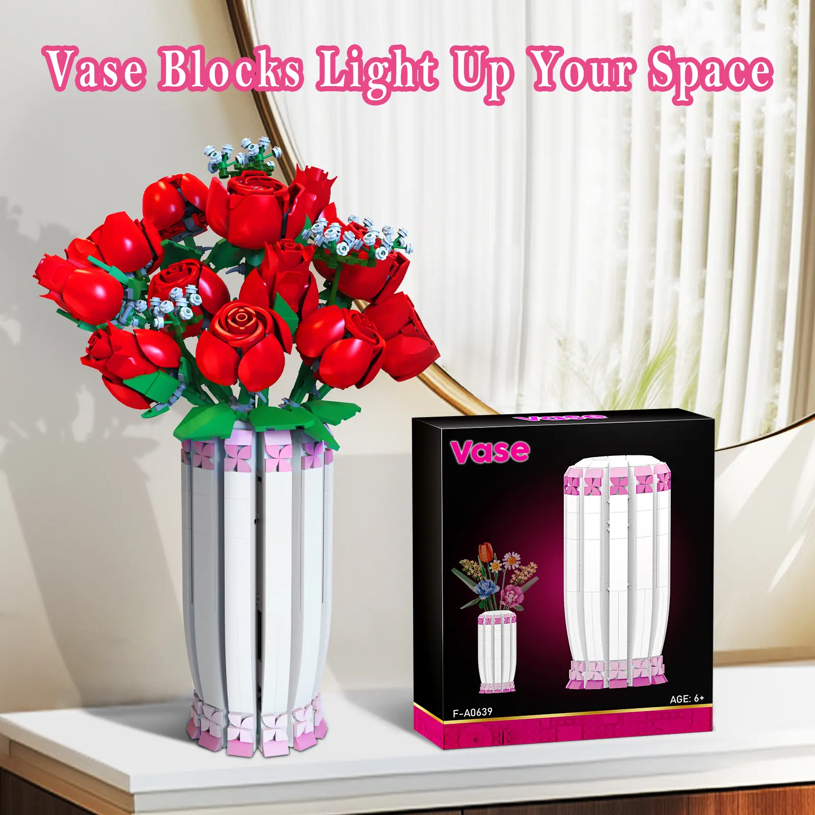 • Ideal Present: Perfect for Valentine's Day or Christmas gifts. The colorful box makes it an ideal present for friends and family. Share warmth and joy with this charming pink vase block set. 🎁