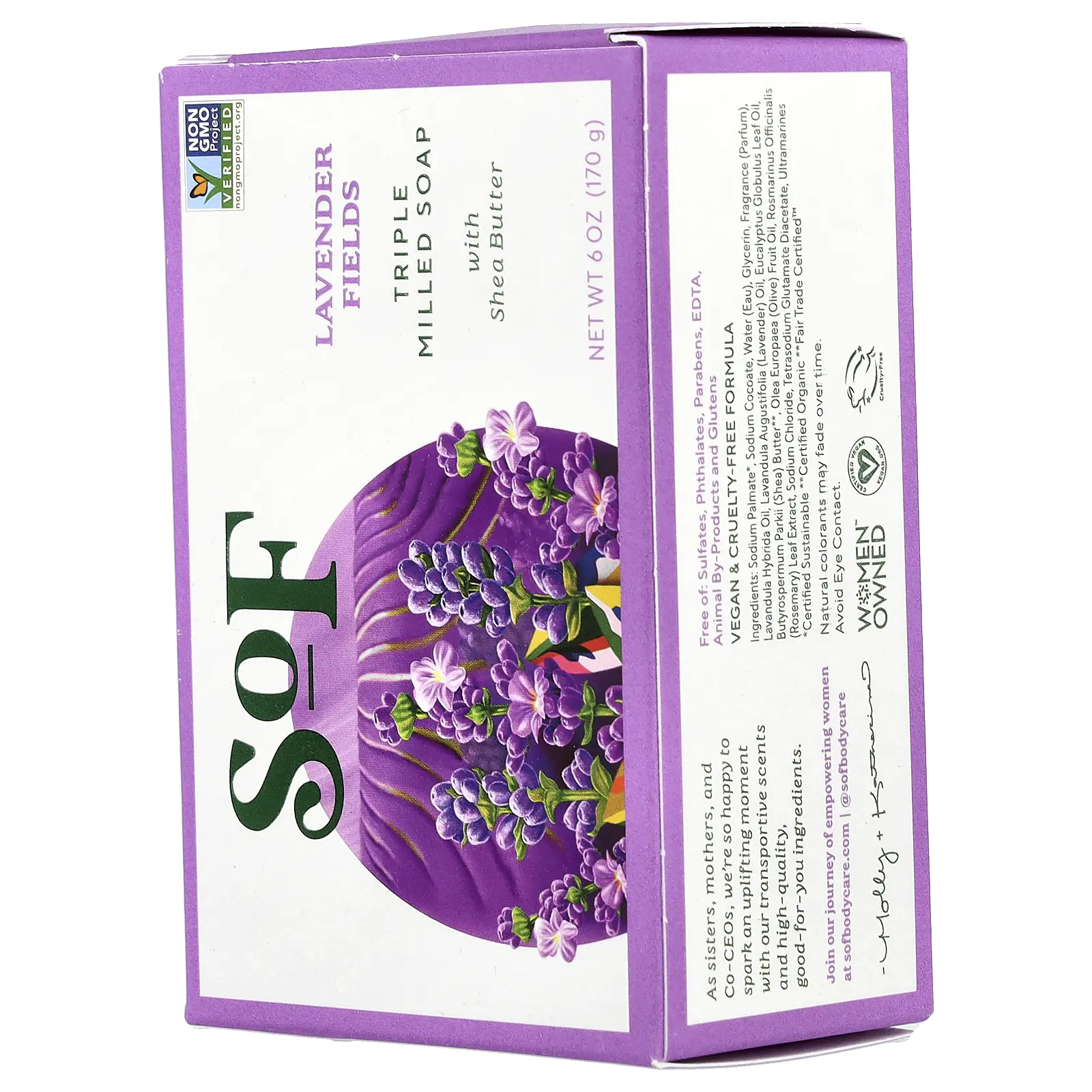5. SoF Triple Milled Bar Soap with Shea Butter, Lavender Fields, 6 oz (170 g)
