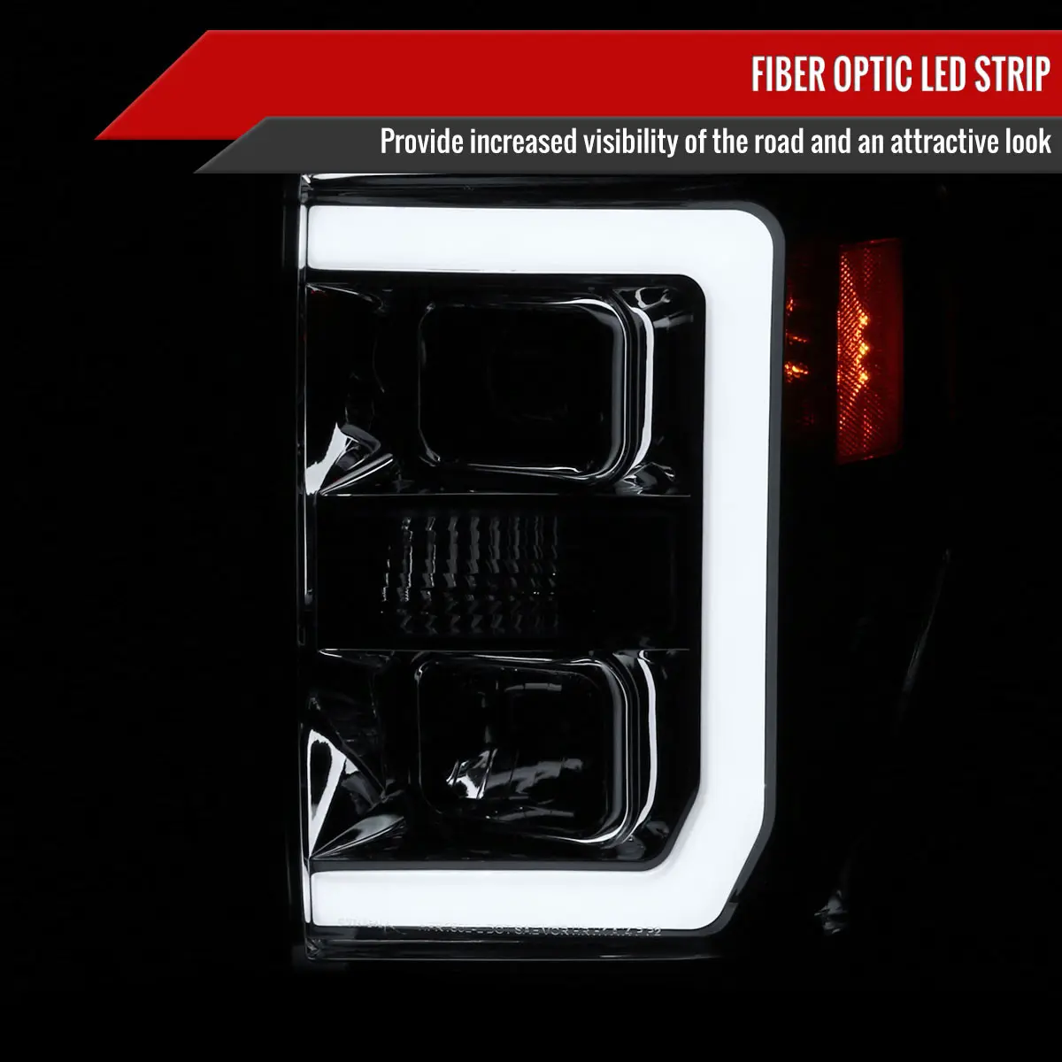 2008-2010 Ford F-250 F-350 F-450 LED C-Bar Projector Headlight (Chrome Housing/Clear Lens)