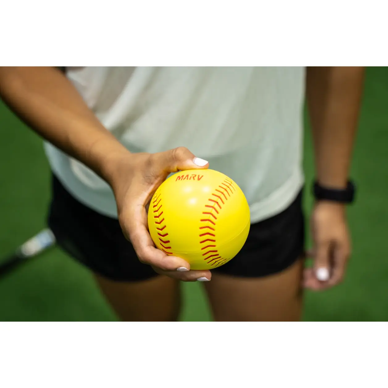 - Lightweight foam ball with forgiving benefits on the hands and bat