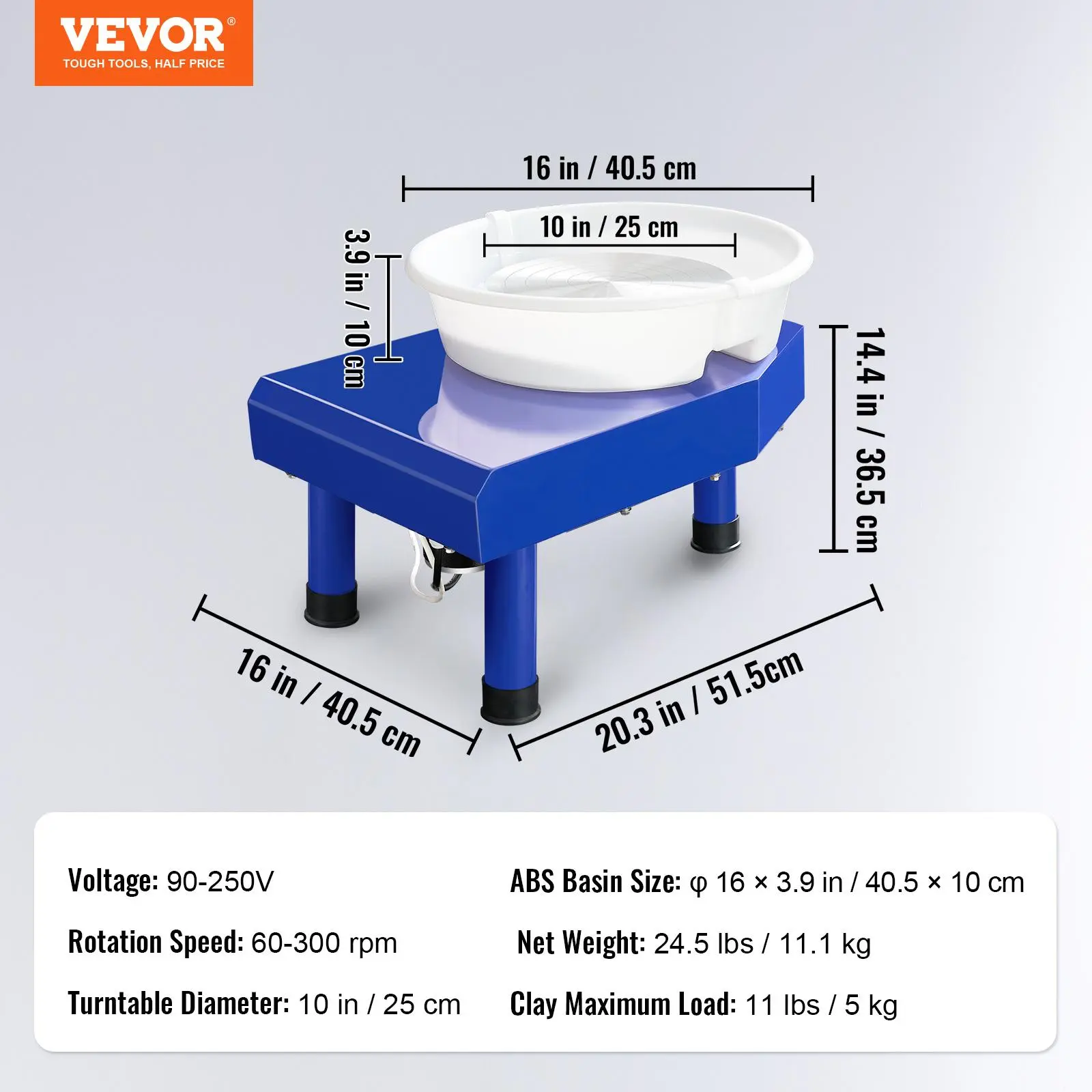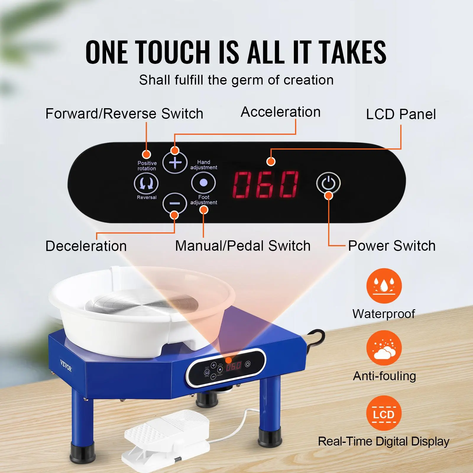 5. VEVOR Pottery Wheel, 10in Ceramic Wheel Forming Machine, Foot Pedal ABS Detachable Basin, 60-300RPM Adjustable Speed Manual LCD Panel, Sculpting Tool Apron Accessory Kit for Work Art Craft DIY