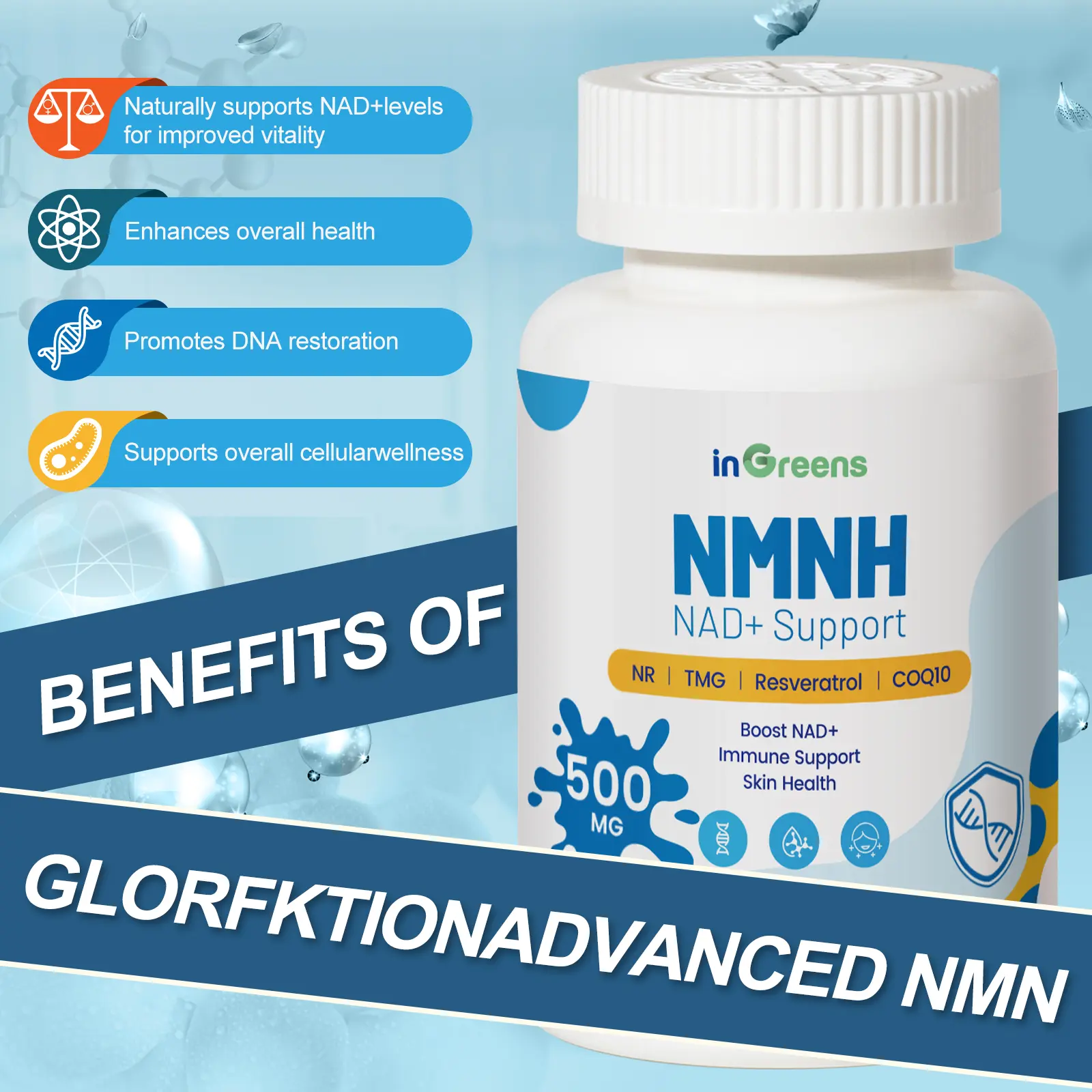 NMNH is a precursor to NAD and can better help your body absorb the NAD#supplements #NAD #nmnh #ingreens #fountainofyouth