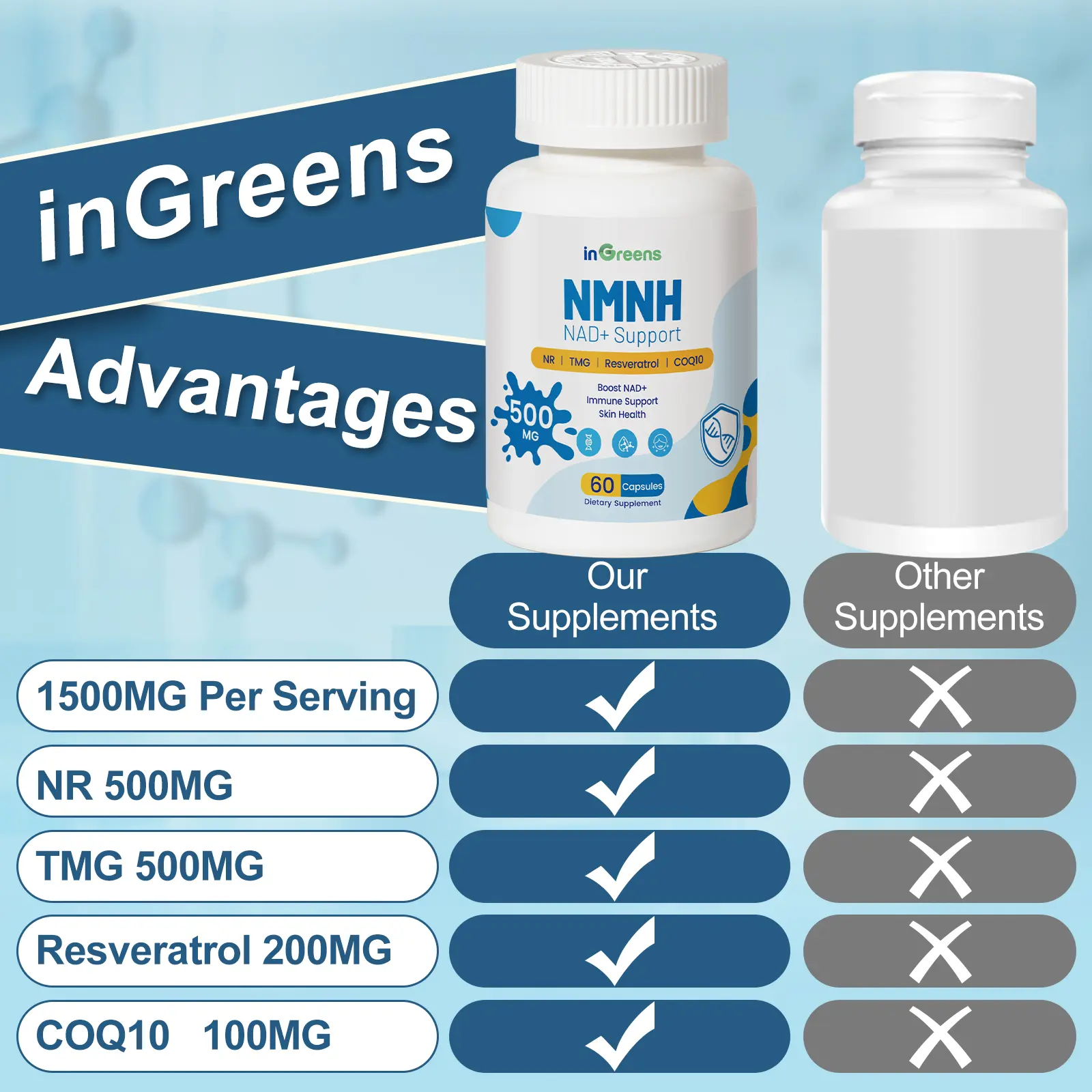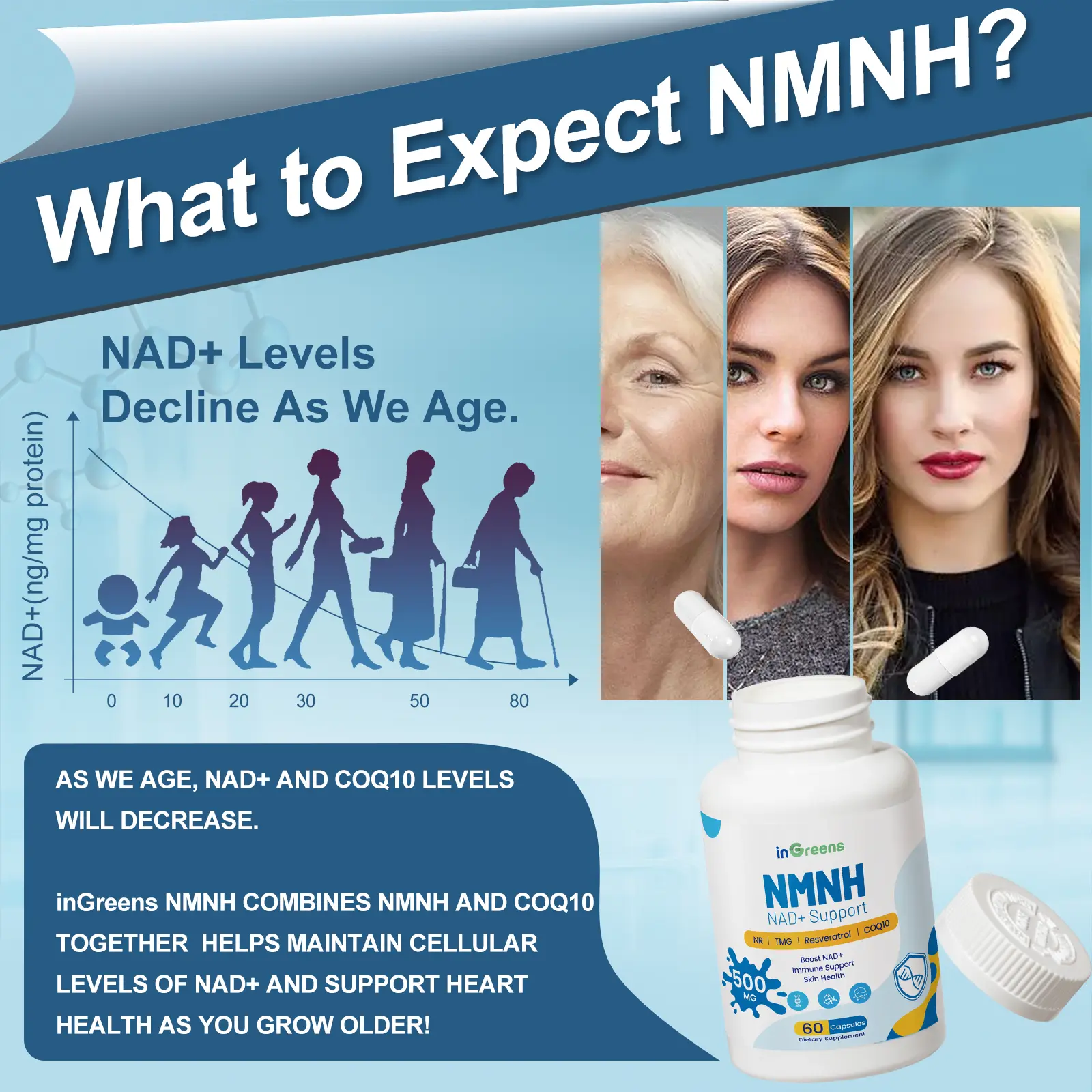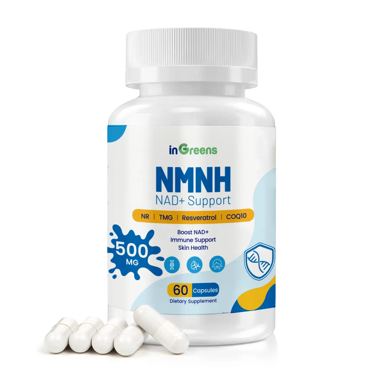 inGreens NMNH Supplement with NR, TMG, Resveratrol, COQ10 - Upgraded version of NAD, 500mg per serving, GMO Free - 60 Capsules/1 Pack, 120 Capsules/2 PackinGreens NMNH Supplement with NR, TMG, Resveratrol, COQ10 - Upgraded version of NAD, 500mg per serving, GMO Free - 60 Capsules/1 Pack, 120 Capsules/2 PackinGreens NMNH Supplement with NR, TMG, Resveratrol, COQ10 - Upgraded version of NAD, 500mg per serving, GMO Free - 60 Capsules/1 Pack, 120 Capsules/2 Pack