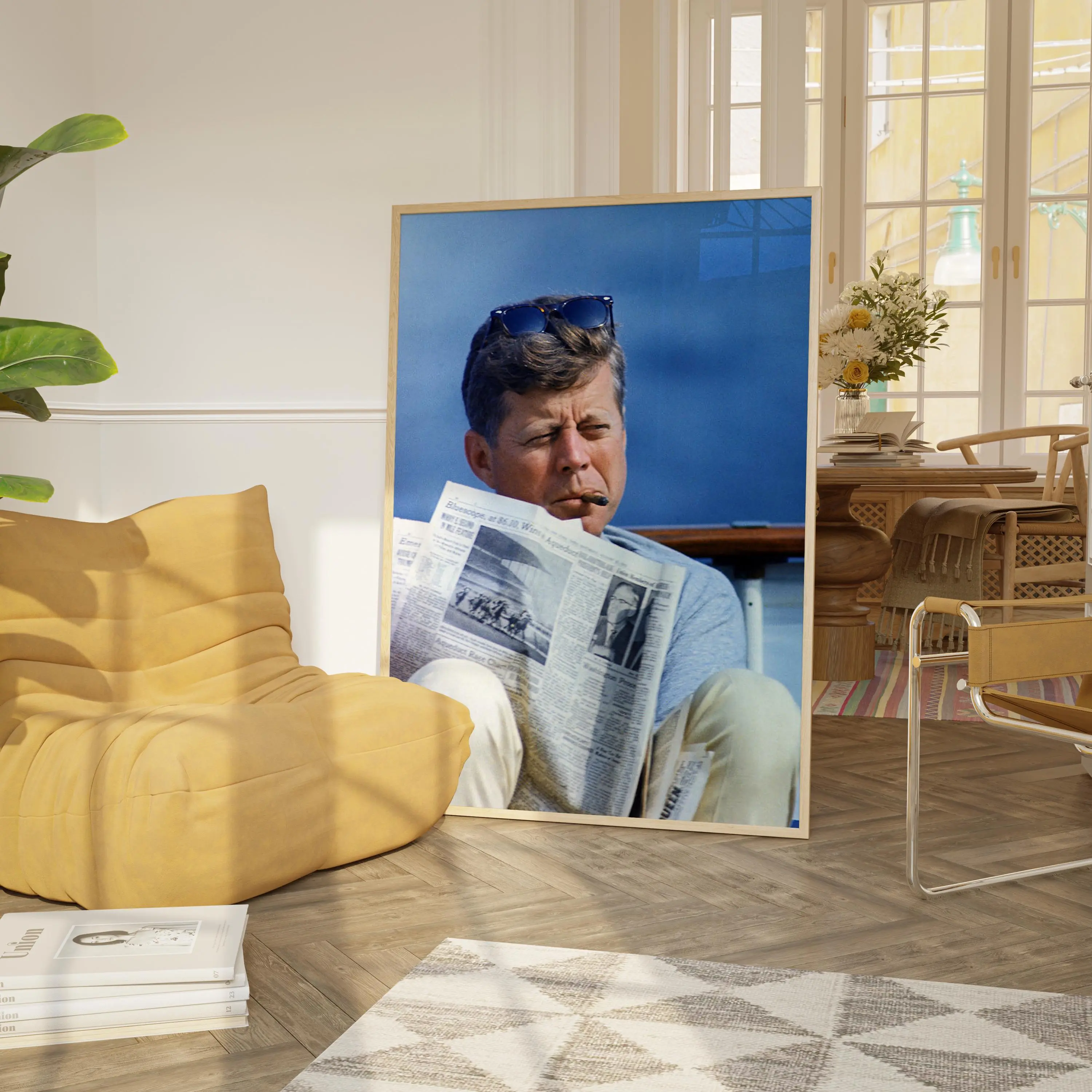 John F. Kennedy Smoking a Cigar Poster, Bedroom Wall Art, Living Room Decor, Retro Wall Art, US President Poster, Aesthetic Posters
