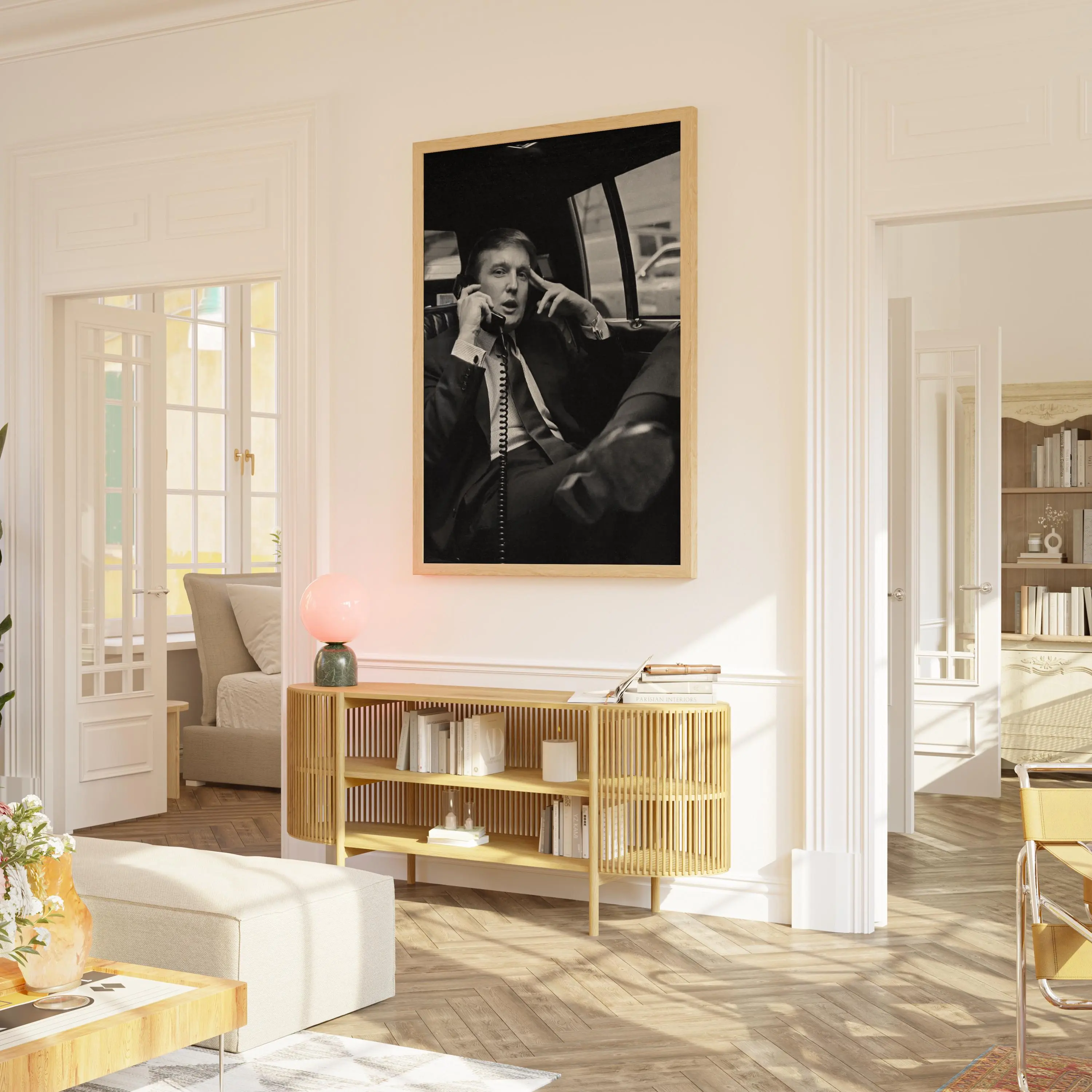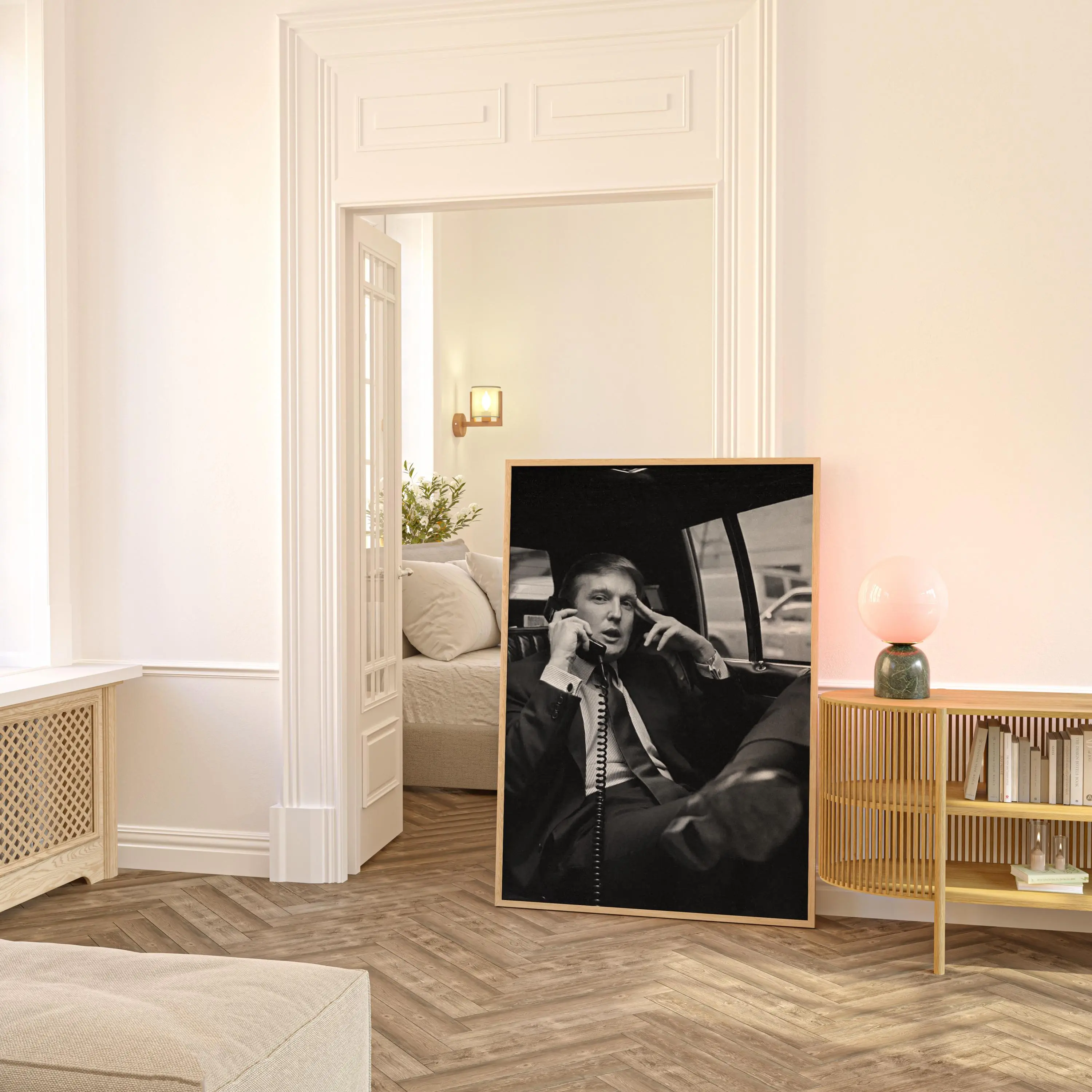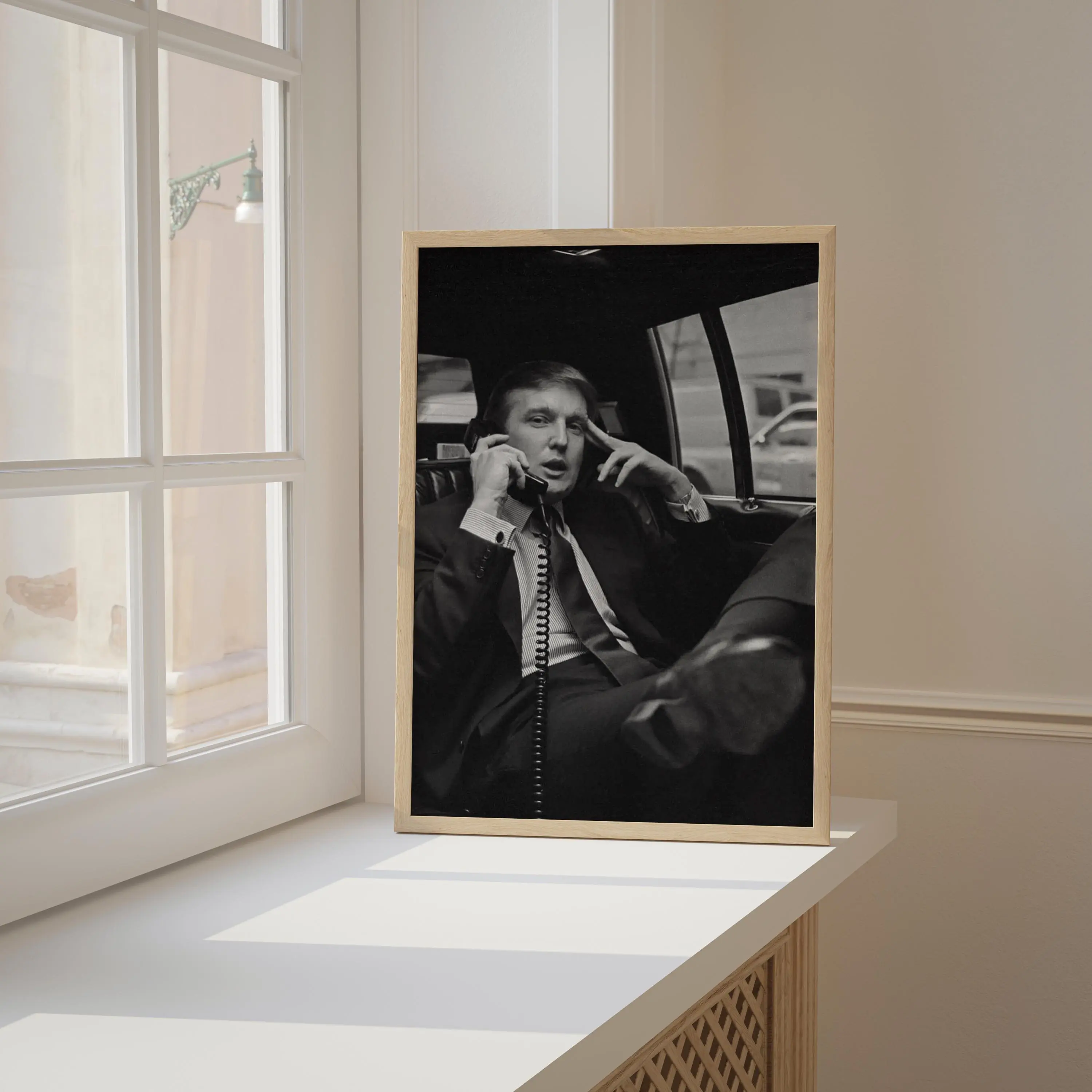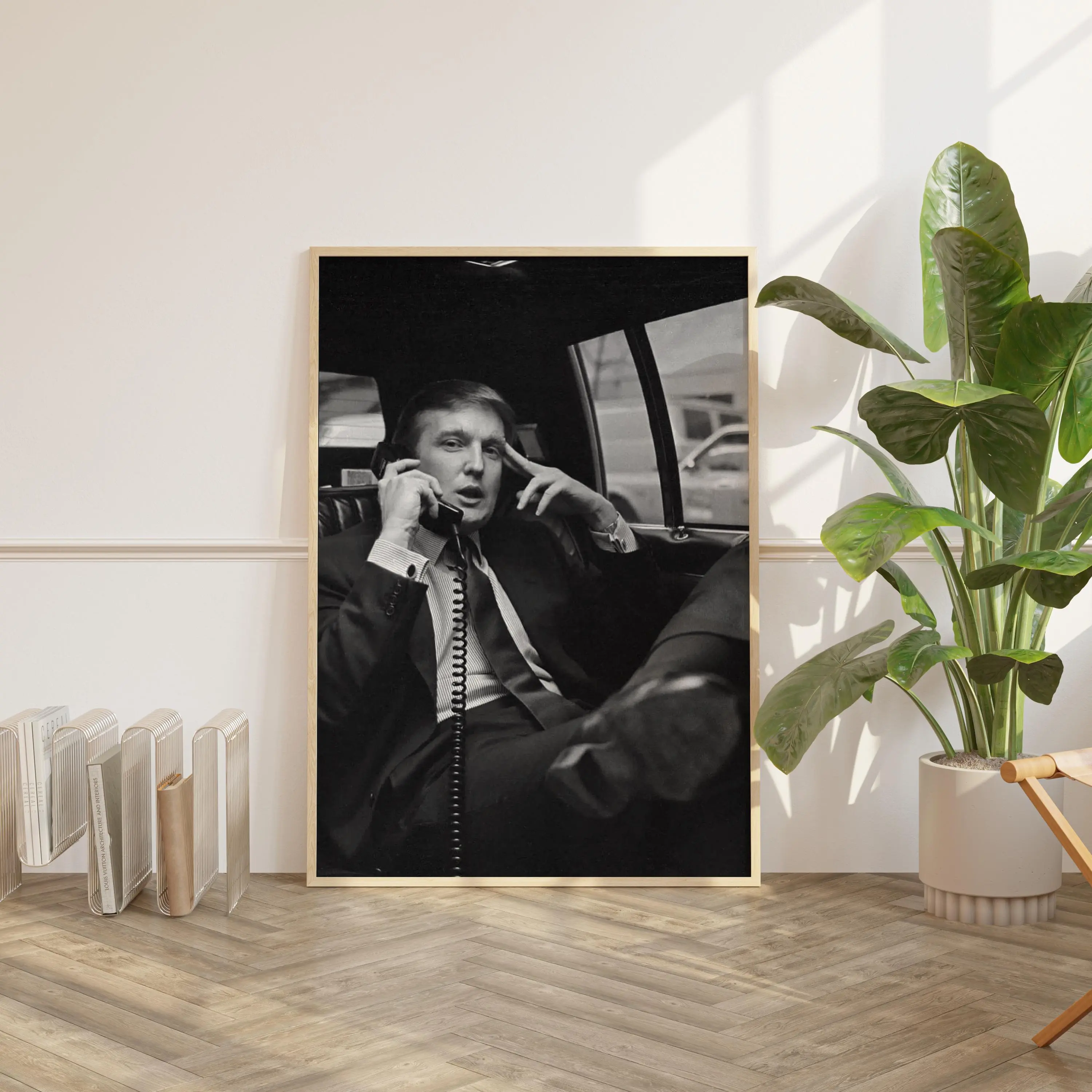 Trump talking on the phone in the back of limo 1970s, Donald Trump Poster, Celebrity Photos, Retro Office Wall Art, President Trump Poster