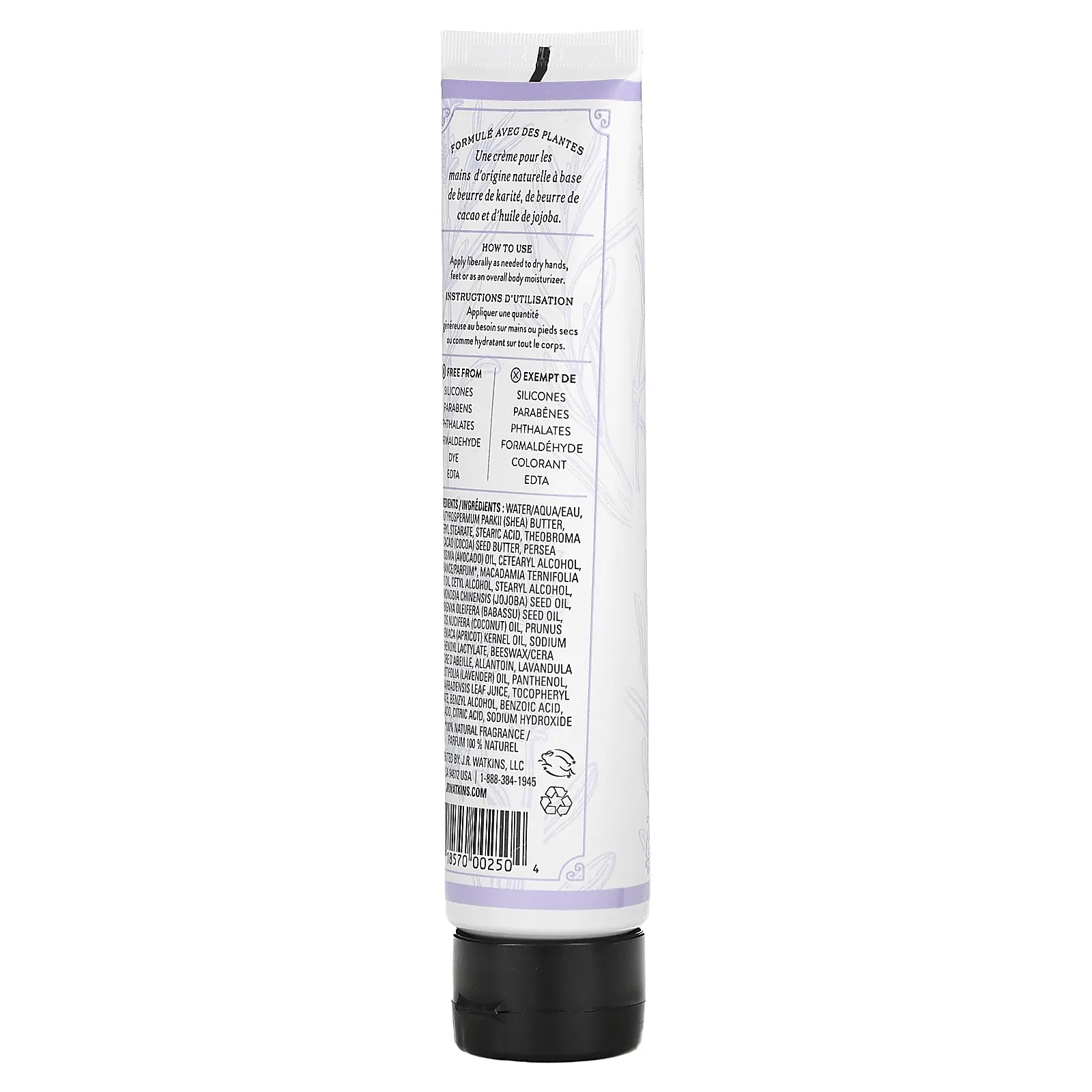 5. J R Watkins Hand Cream, Lavender, 3.3 oz (95 g)