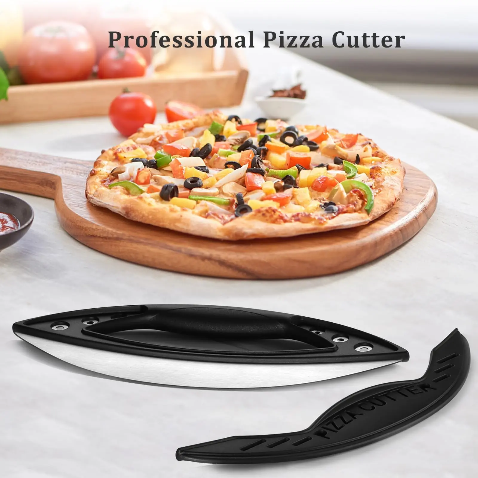 12" Pizza Cutter Rocker - Razor Sharp Stainless Steel Slicer Knife with Blade Cover