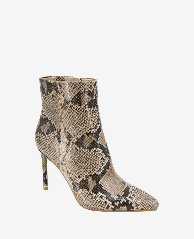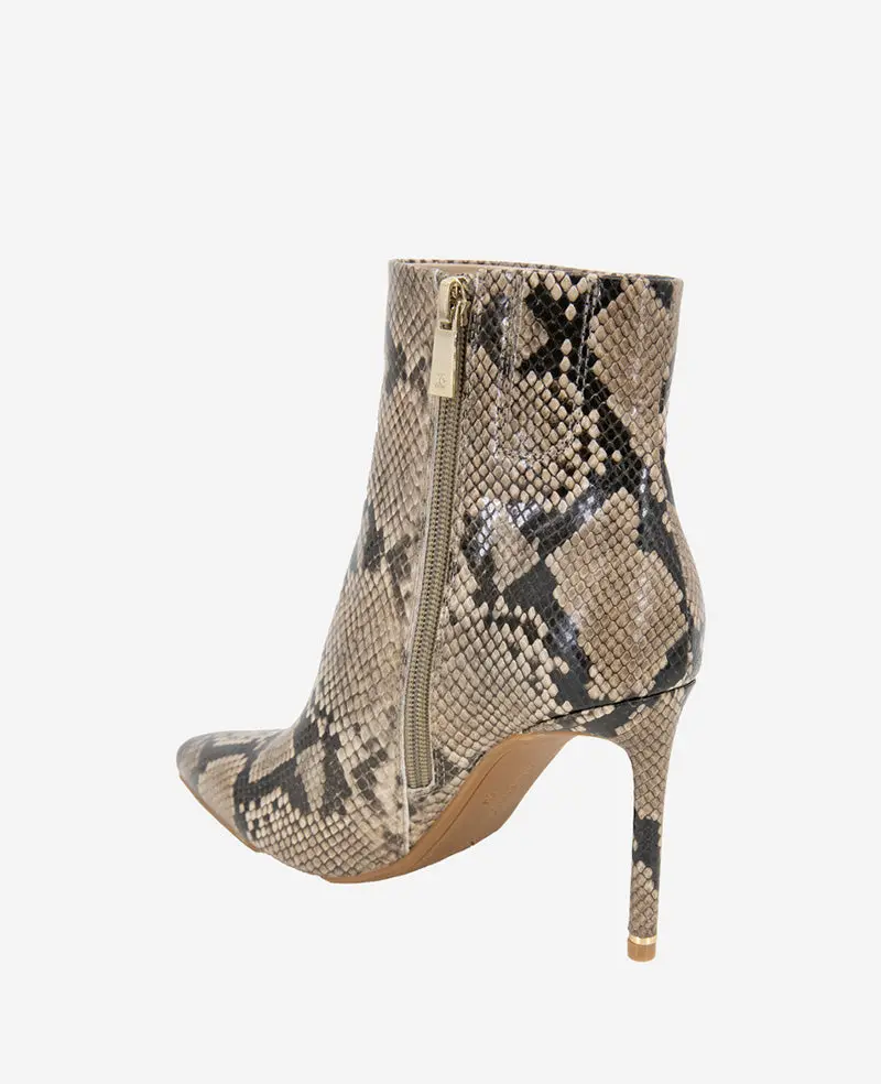 Quincy Snakeskin Leather Heel Ankle Bootie