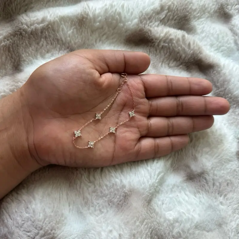 Beautiful 925 Sterling Silver Bracelet with Mini Flowers Pendant, Elegant Design, Adjustable Length