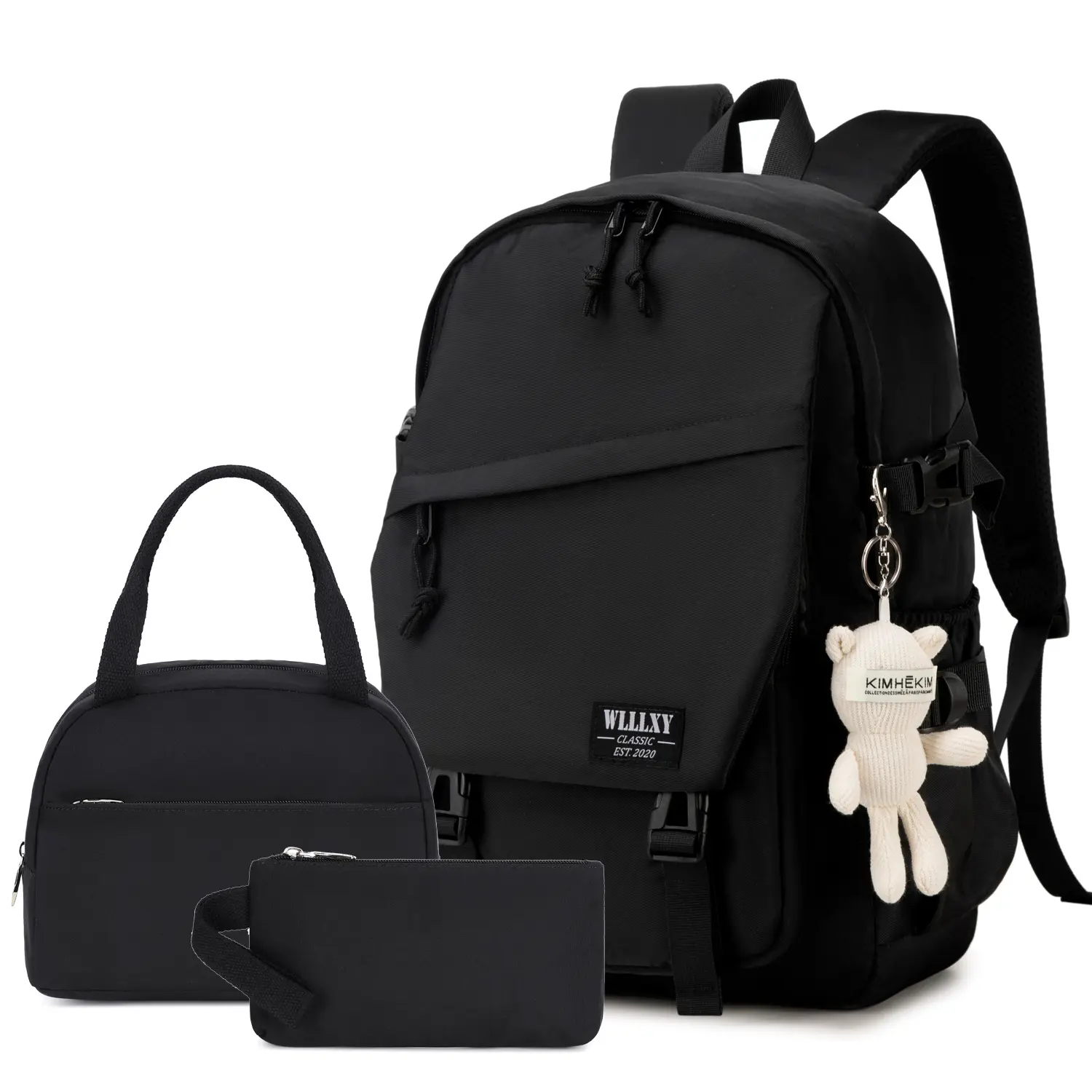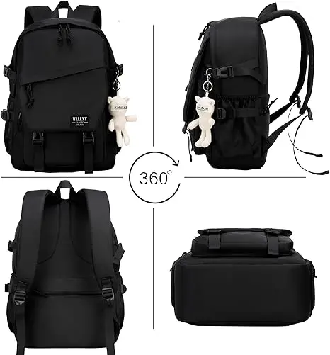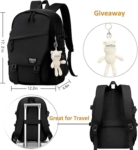 【Large Size 】The size of girls computer backpack is 12.2"x5.9"x17.5"(L*W*H), Weight:1.65LB. The laptops bag with padded compartment sleeve fit tablet from 14 to16 inch. This back pack also along with white bear plush doll key pendant makes the schoolbag more fashionable and unique
