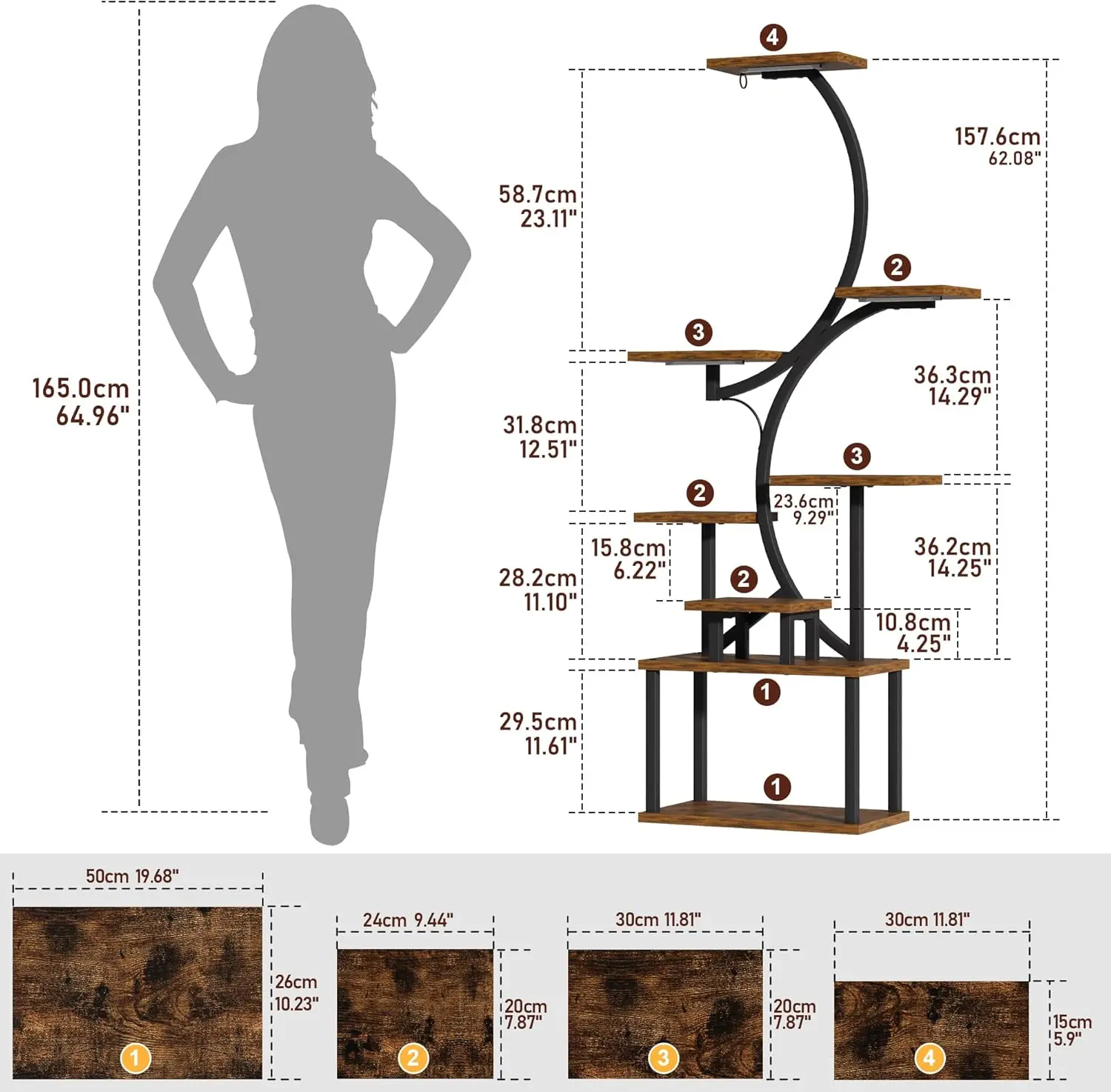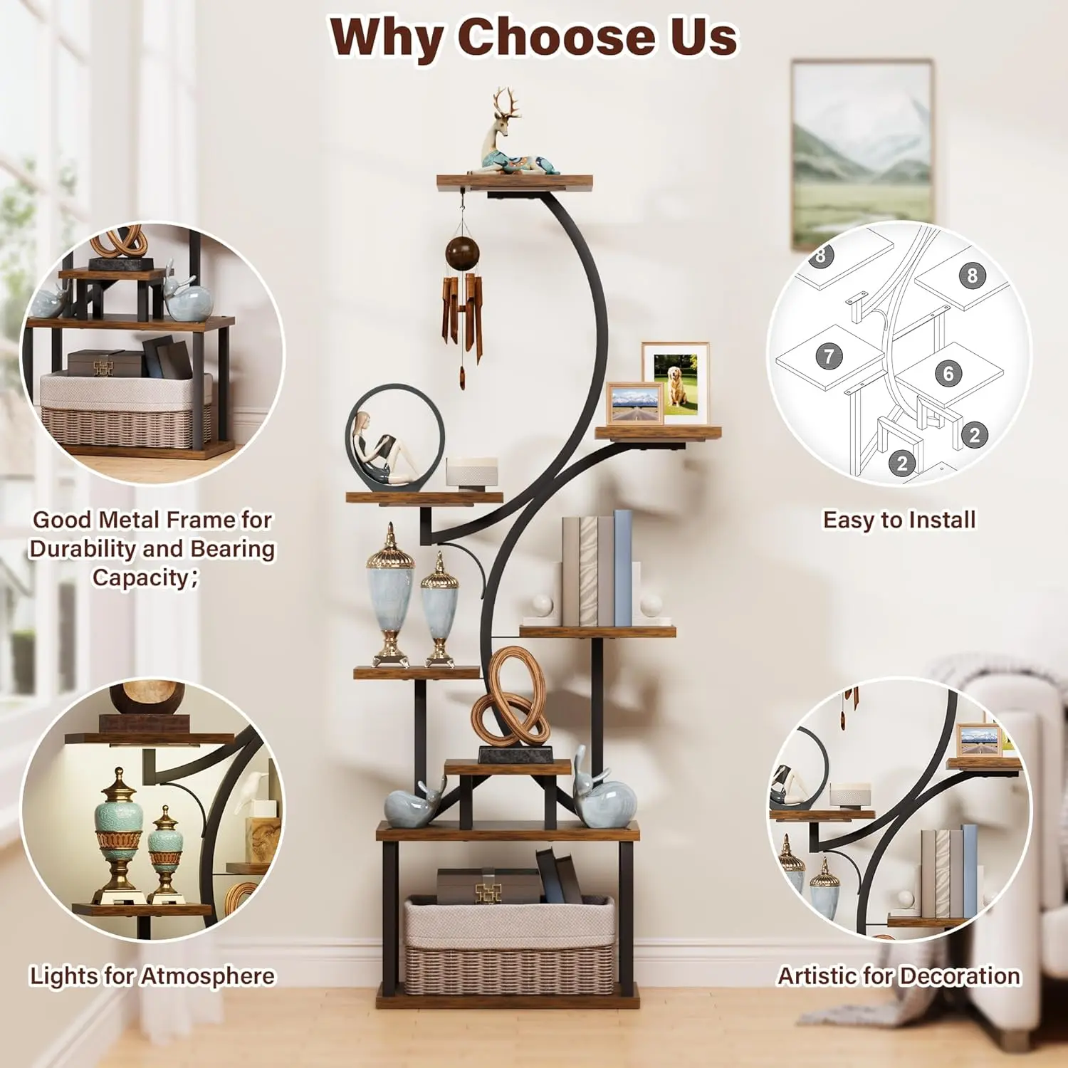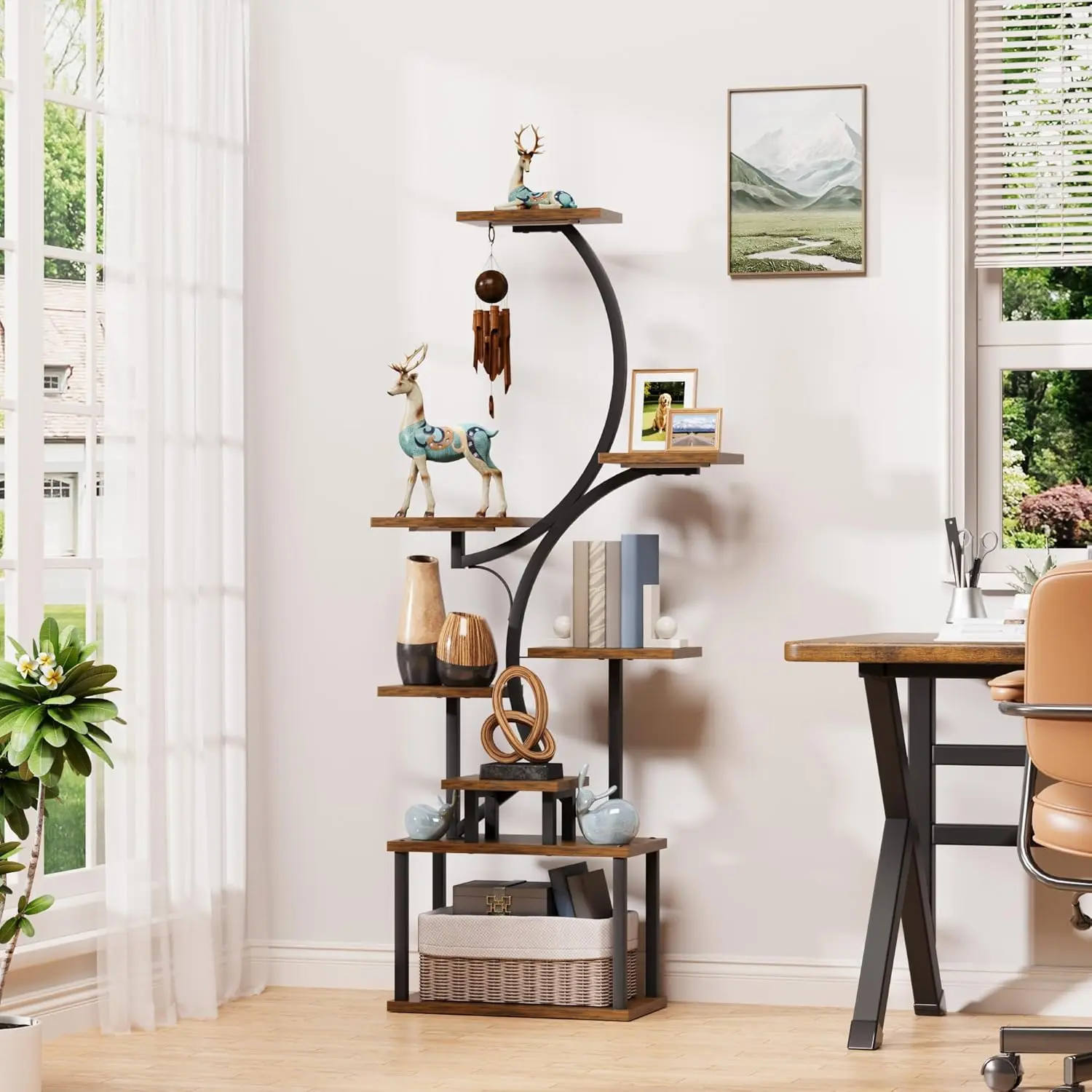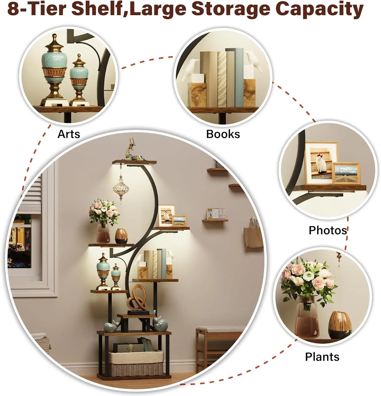 ¡ăMake the Most of Your Corner Spaceă Our standing shelf features 8 tiers, 8 display positions, and 1 hanger which provdes large storage space for you to display a variety of items such as books, plants, collectibles, ornaments, and more. Its design efficiently utilizes vertical corner space, keeping your home organized and free from the clutter.