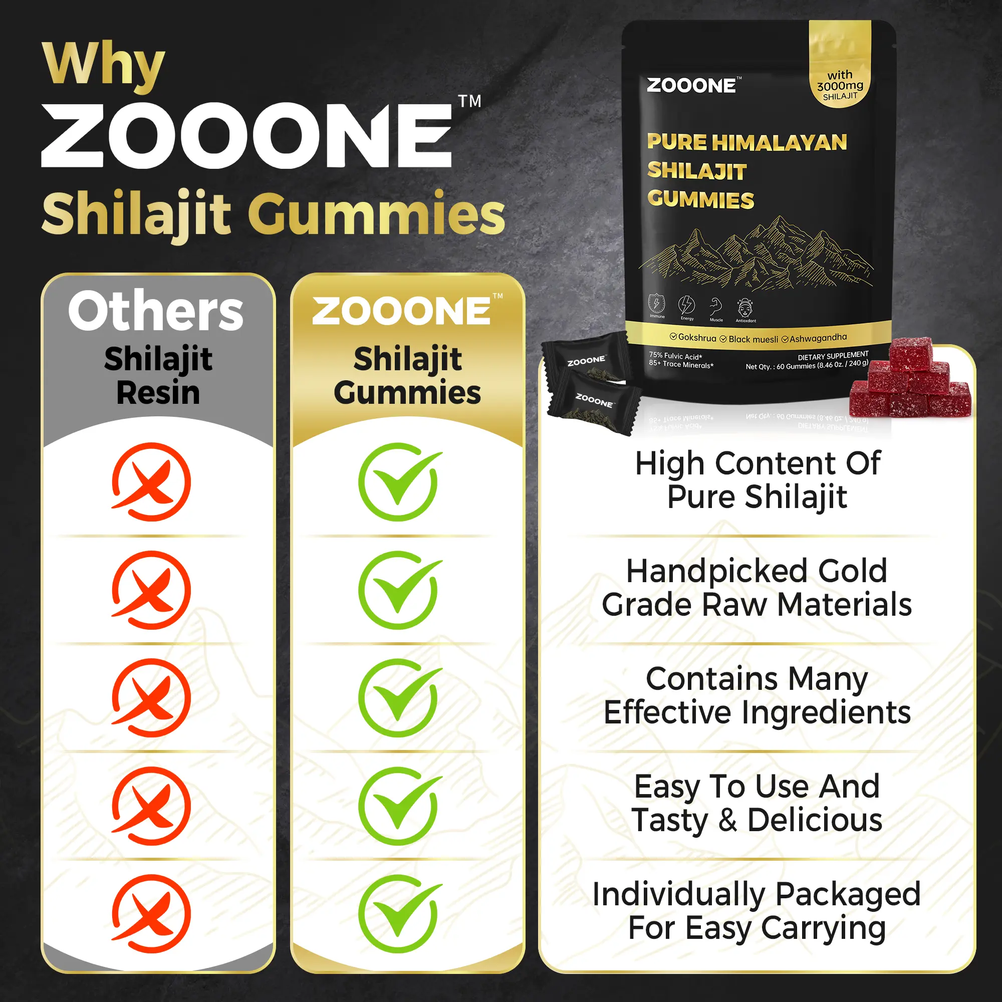 ZOOONE 60 Gummies Pure Himalayan Shilajit Gummies Gold I Lab Tested I No Added Sugar I Ashwagandha, Gokshura| Fulvic Acid & 85+ Trace Minerals I for Men, Women I Non-GMO I 100% Natural & Organic I