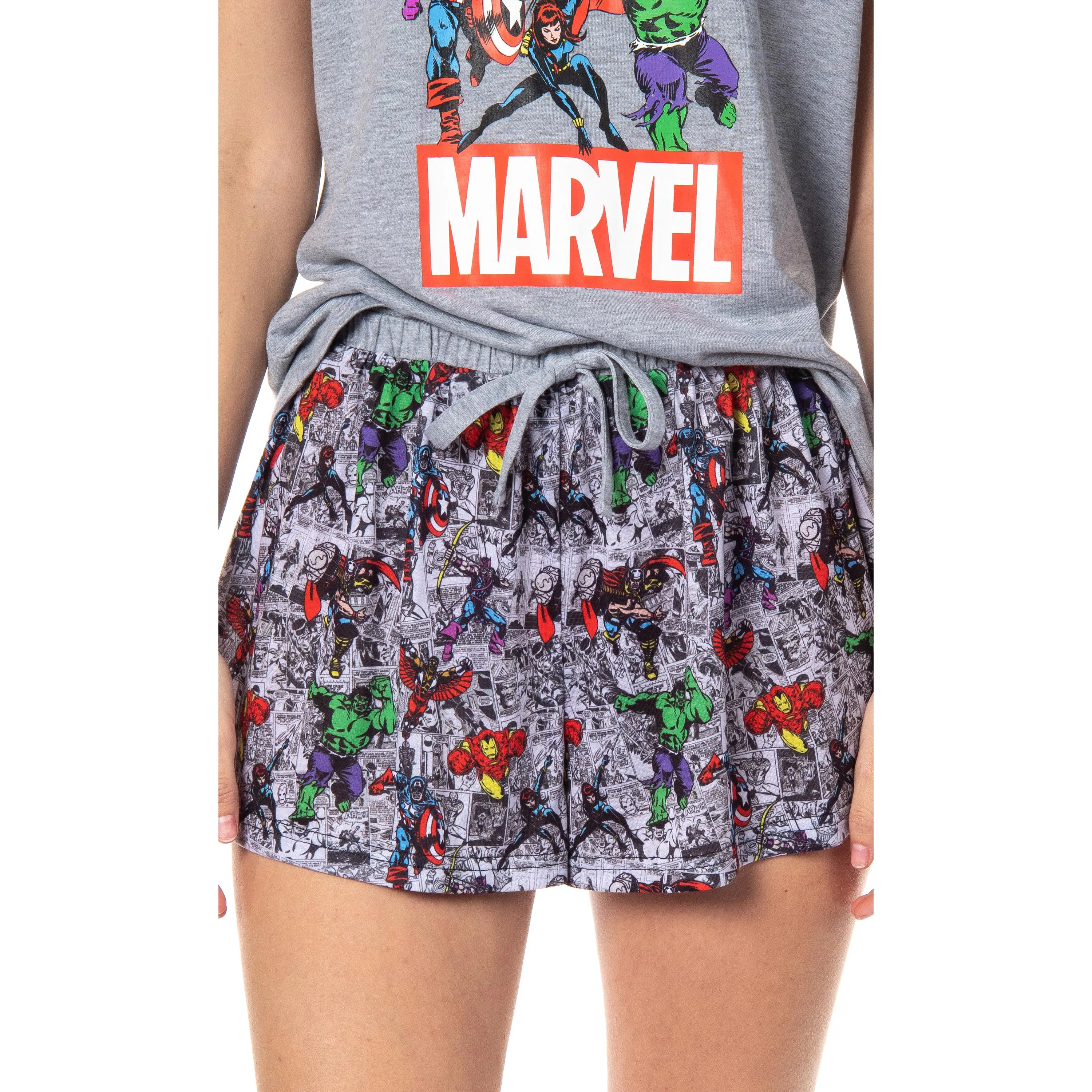 The Avengers is a group of superheroes trying to save humanity from the evil snap of Thanos. The Avengers have consisted of many teammates, including fan favorites such as Thor, Hulk, Captain America, Iron Man, and Black Widow. If you're a fan of Marvel Comics and especially The Avengers, you'll love this pajama set! This The Avengers pajama set-top features several of the characters from the team, including Hulk, Black Widow, Iron Man, Thor, Captain America, Hawkeye, and The Falcon. The bottoms feature the same characters in a tossed print along a comic-style background. This two piece pajama set is made from soft breathable 100% polyester jersey. These are the best! MERCHANDISE - Intimo specializes in top-notch, sleepwear for men, women, boys, and girls. Intimo is the industry leader in pop culture products and apparel that deal with the entertainment industry in comic books, tv shows, movies, music, sports, and what's trending. SIZING / SOFT FABRIC BLEND - This two piece pajama set is made from soft breathable 100% polyester jersey. It is listed in womens' sizing. Our model is 5 feet 10 inches tall and is wearing size small. CLASSIC CHARACTER DESIGN - This The Avengers pajama set-top features several of the characters from the team, including Hulk, Black Widow, Iron Man, Thor, Captain America, Hawkeye, and The Falcon. The bottoms feature the same characters in a tossed print along a comic-style background. They're for everyday wear and fans of Marvel Comics! FEATURES - The set features an elastic stretch waistband on the shorts and a classic crewneck fit on the top! GIFT FOR ANY OCCASION - Magnificent design for everyday use. This pajama is designed with true fans in mind. It makes a great gift for Birthdays, Christmas, Valentine's Day, Easter, Father's Day, Mother's Day, or any other special occasion! In fact, it makes a gift for YOURSELF, because you might be the biggest fan of all.