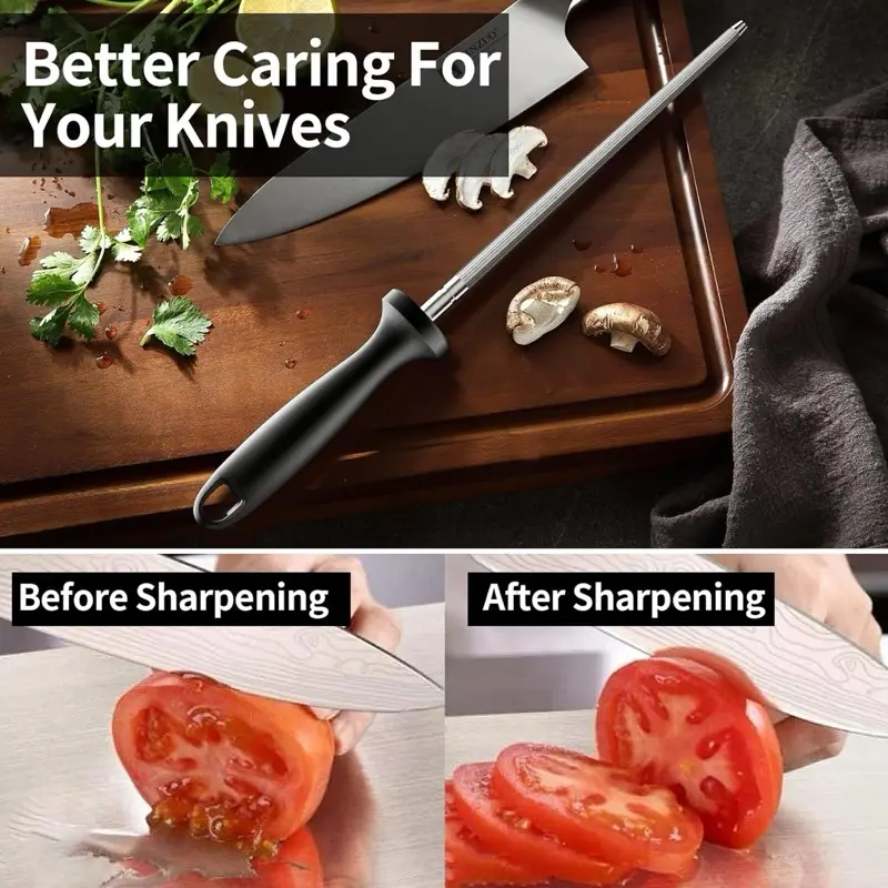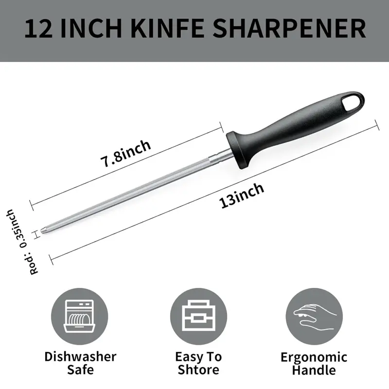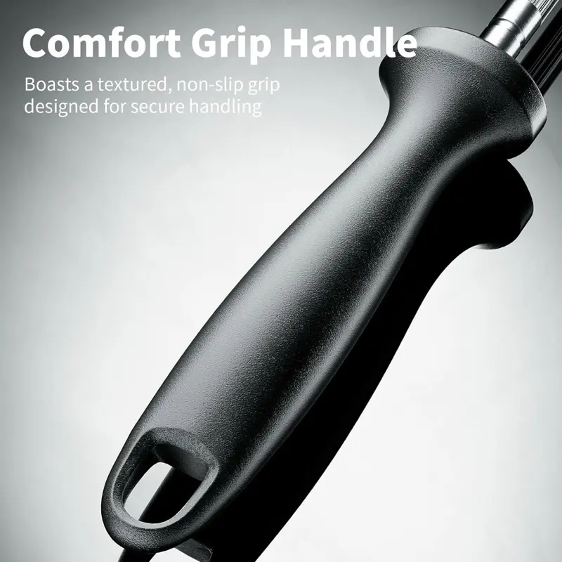 ·Ergonomic Handle- Ergonomic handle design with PP material, non-slip easy to grip, let your sharpening is more convenient. Overall measures 13 in. L, 7.8 in the rod.
