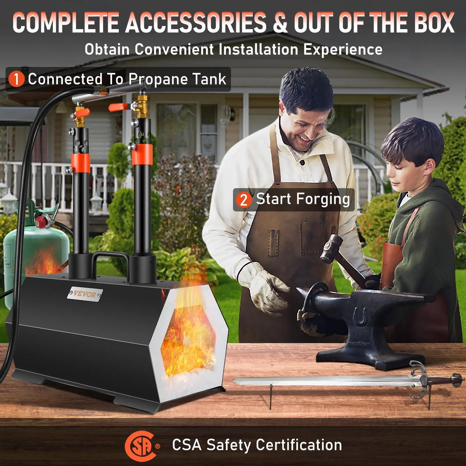 • Start Forging Immediately: All key accessories are pre-installed, making it effortless to get started. The farrier forge is ready for use after unpacking. After connecting to the propane tank, you can create your blacksmithing works immediately. It's that simple!
