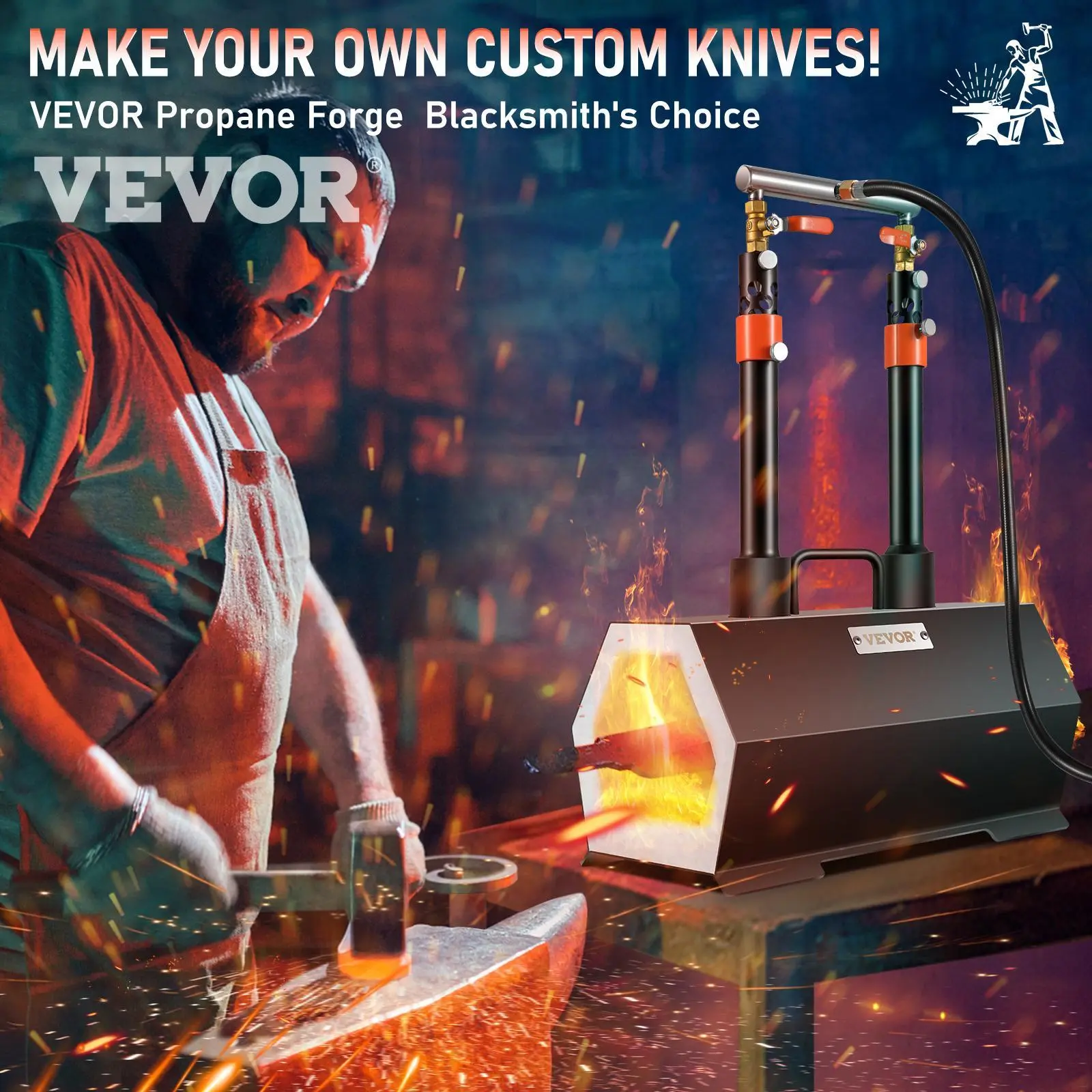5. VEVOR Propane Forge Portable, Double Burner Tool and Knife Making, Large Capacity Blacksmith Farrier Forges, Mini Furnace Blacksmithing, Gas Forging Tools and Equipment, Complete Kit Kitchen Utensils