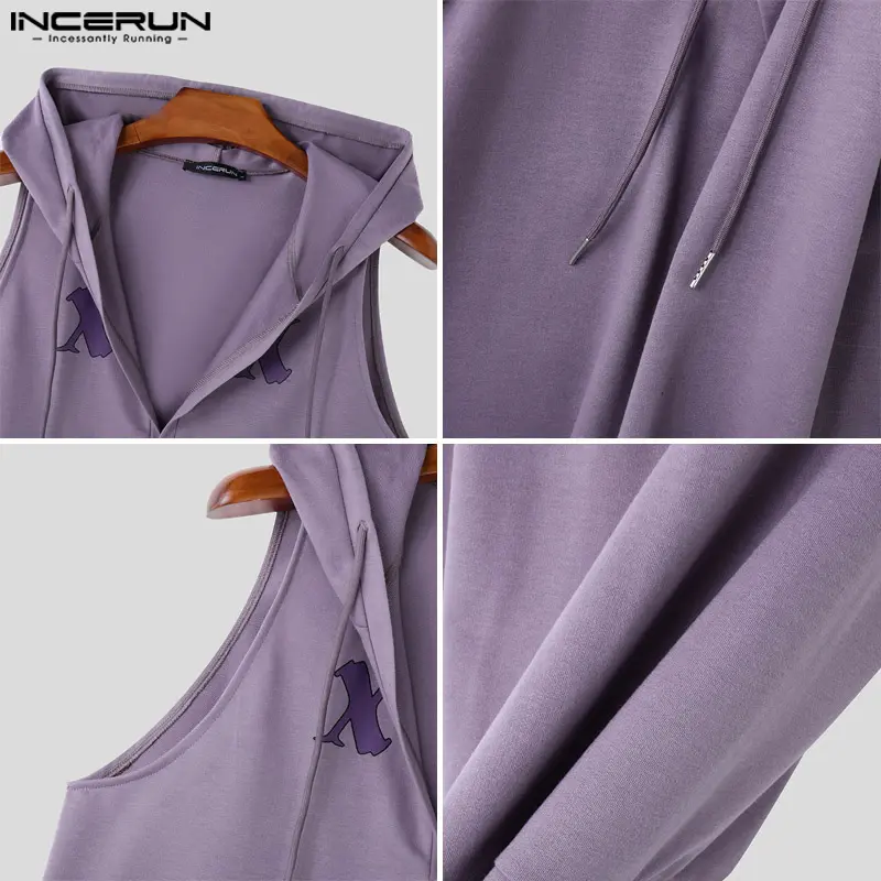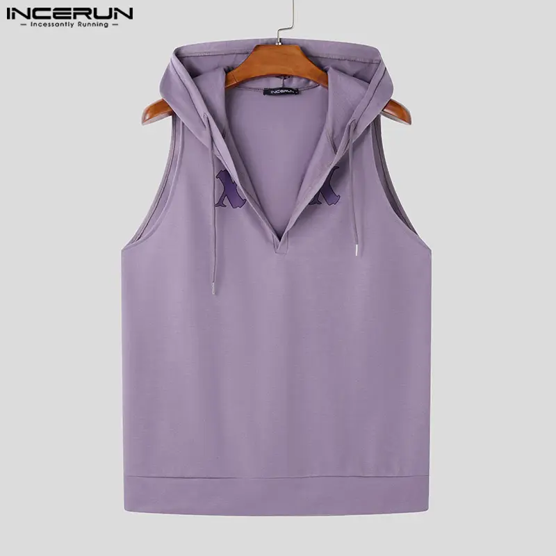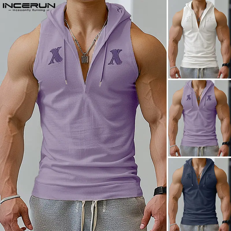 5. INCERUN * Men's Fashion Drawstring Half-Zip Hooded Vest Sport Casual Printing Tanks Top