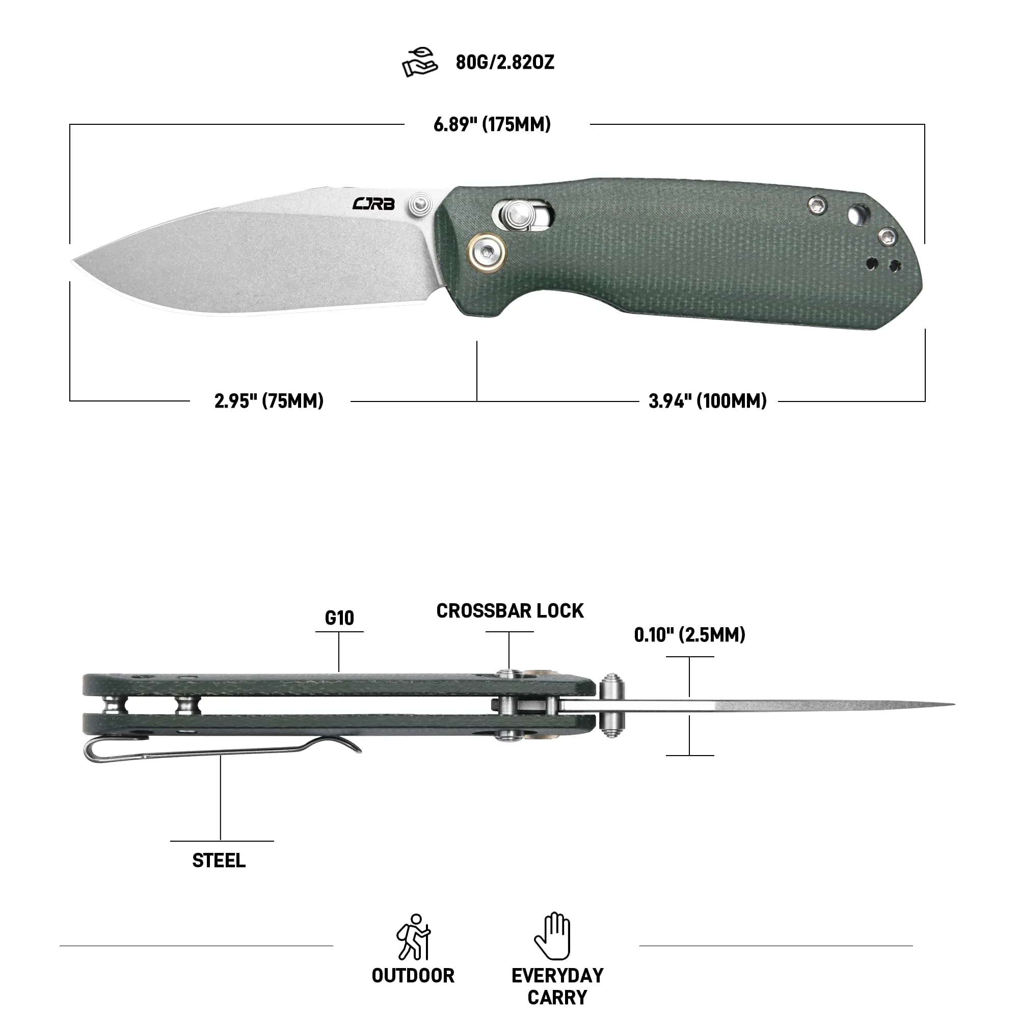 ·CJRB Maximal: The name reflects its ability to perform for the widest number of people as possible. It carries small in your pocket but has the ability to "cut big" when you need it to. Paired with a versatile blade shape that will work for anything, this makes the Maximal a pocket knife that you will feel confident carrying no matter what