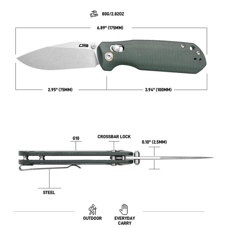 ·Comfortable Grip: With Green Micarta handle, moisture-resistant and durable, the Maximal folding knife provides an excellent grip. The widened handle offers more holding space, combined with an ergonomic design, making the grip more comfortable