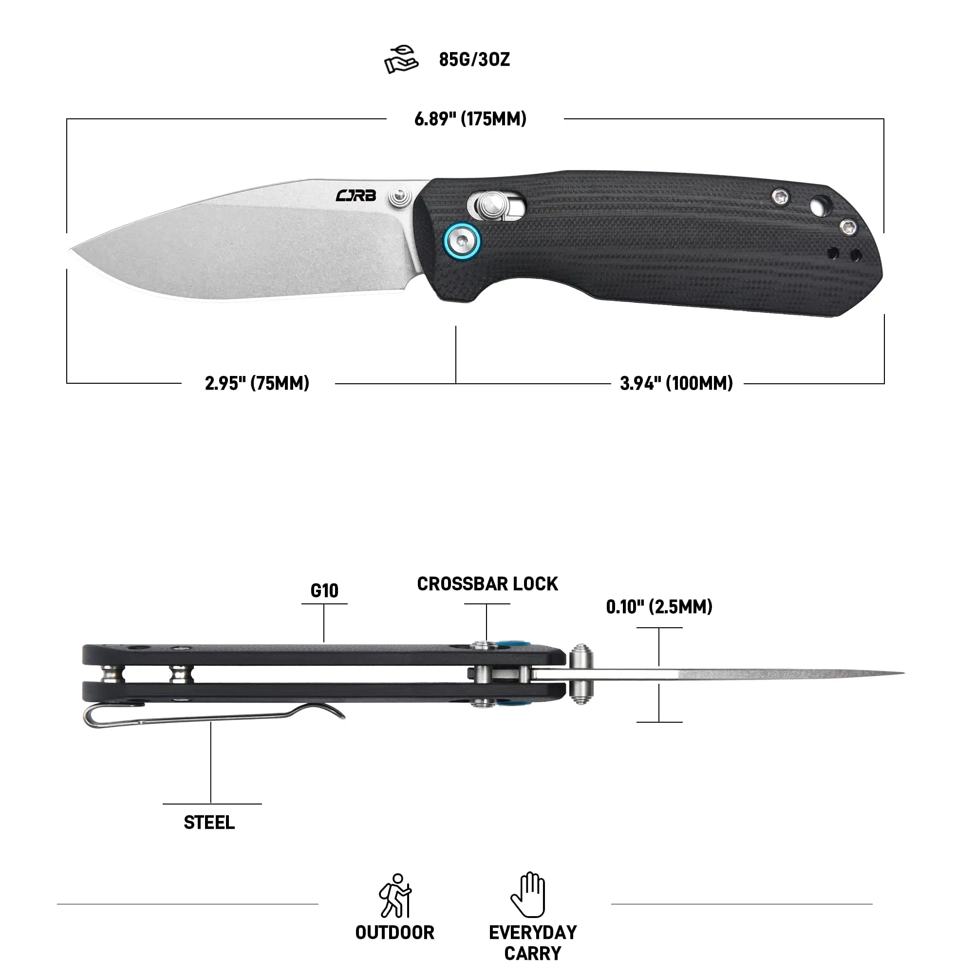 CJRB Maximal Pocket Tool Knife with 2.95" AR-RPM9 Steel Blade and G10 Handle Knife for Camping, Survival Gear, Outdoor Survival Supplies and Survival Equipment Set