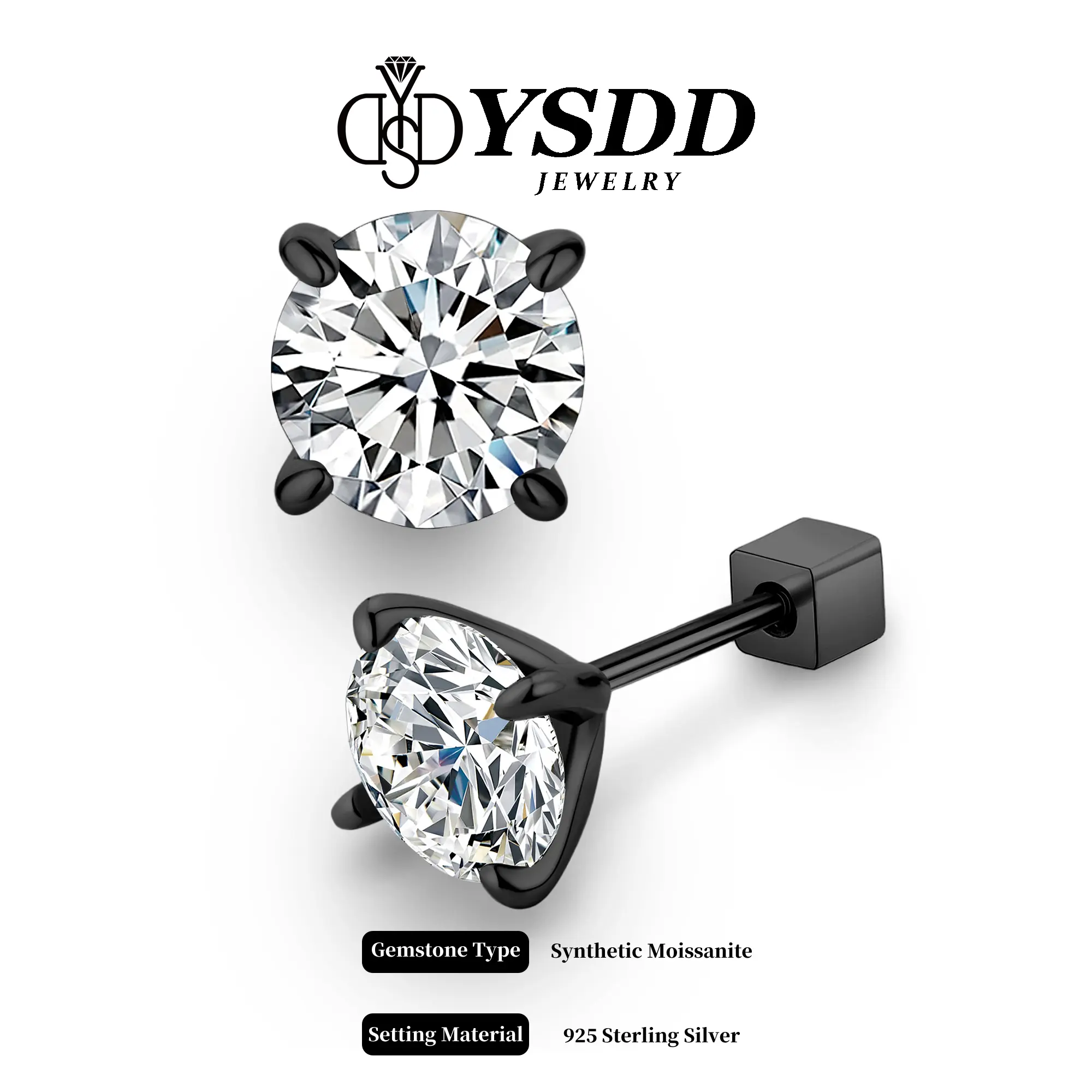 ·Screw back earrings, made of sterling solid silver s925, 4 prongs catching a center stone, fashionable yet classic, suitable for both males and females. The main stone of this earring features a D/E color Synthetic Moissanite that sparks with unmatched intensity, a good level of color, making you eye-catching wherever you go.