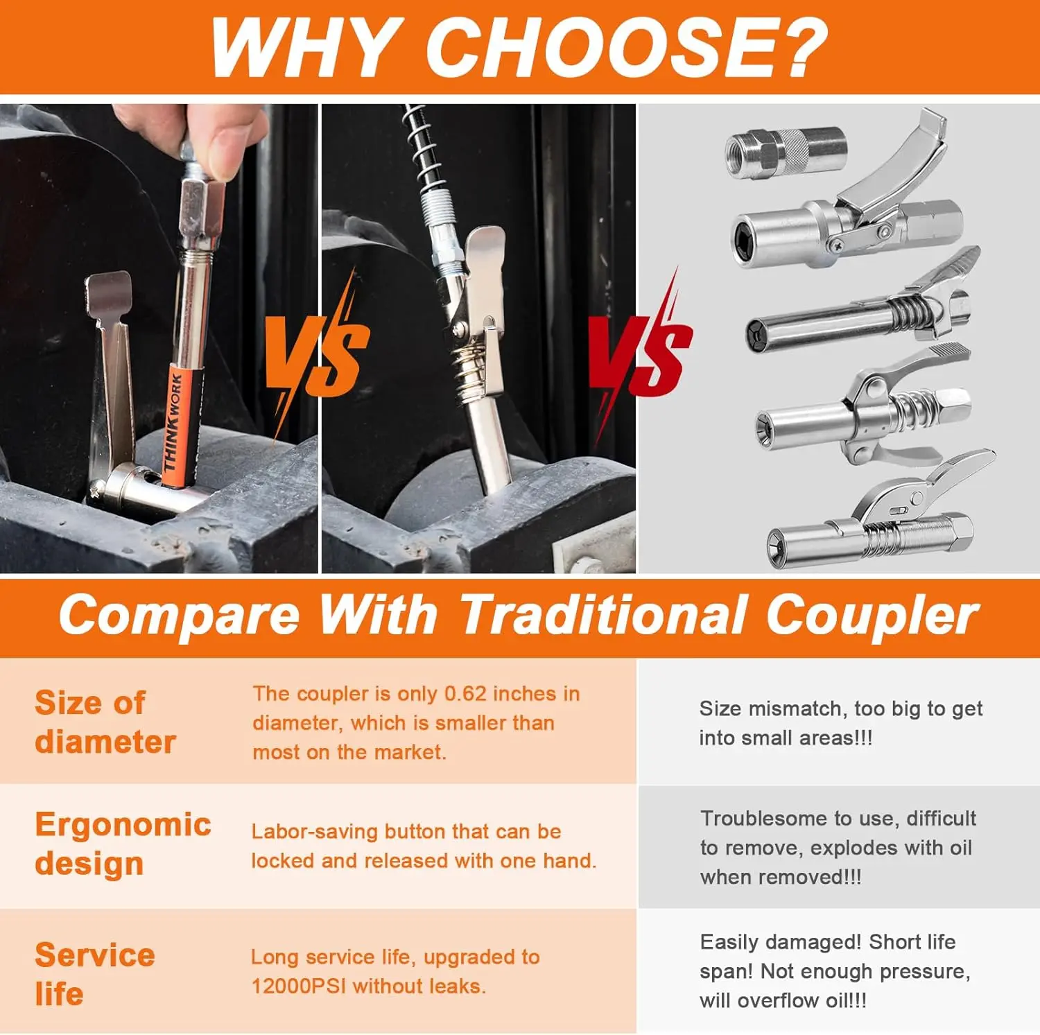 ·Design Concept - Our grease fittings are only 0.62 inches in diameter, making them ideal for use in tight spaces, and they are also 90 degrees for added convenience! The single lever design is easy to operate with one hand, and can be locked and released easily and quickly.