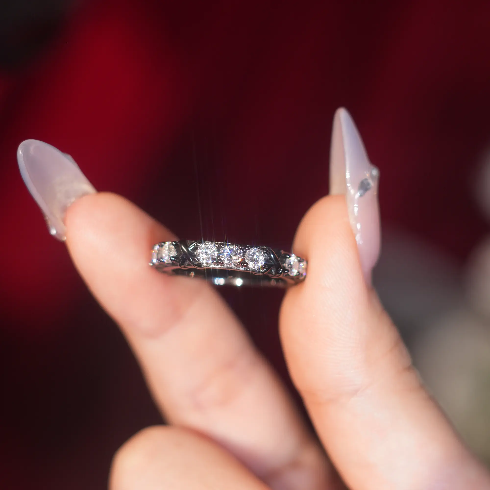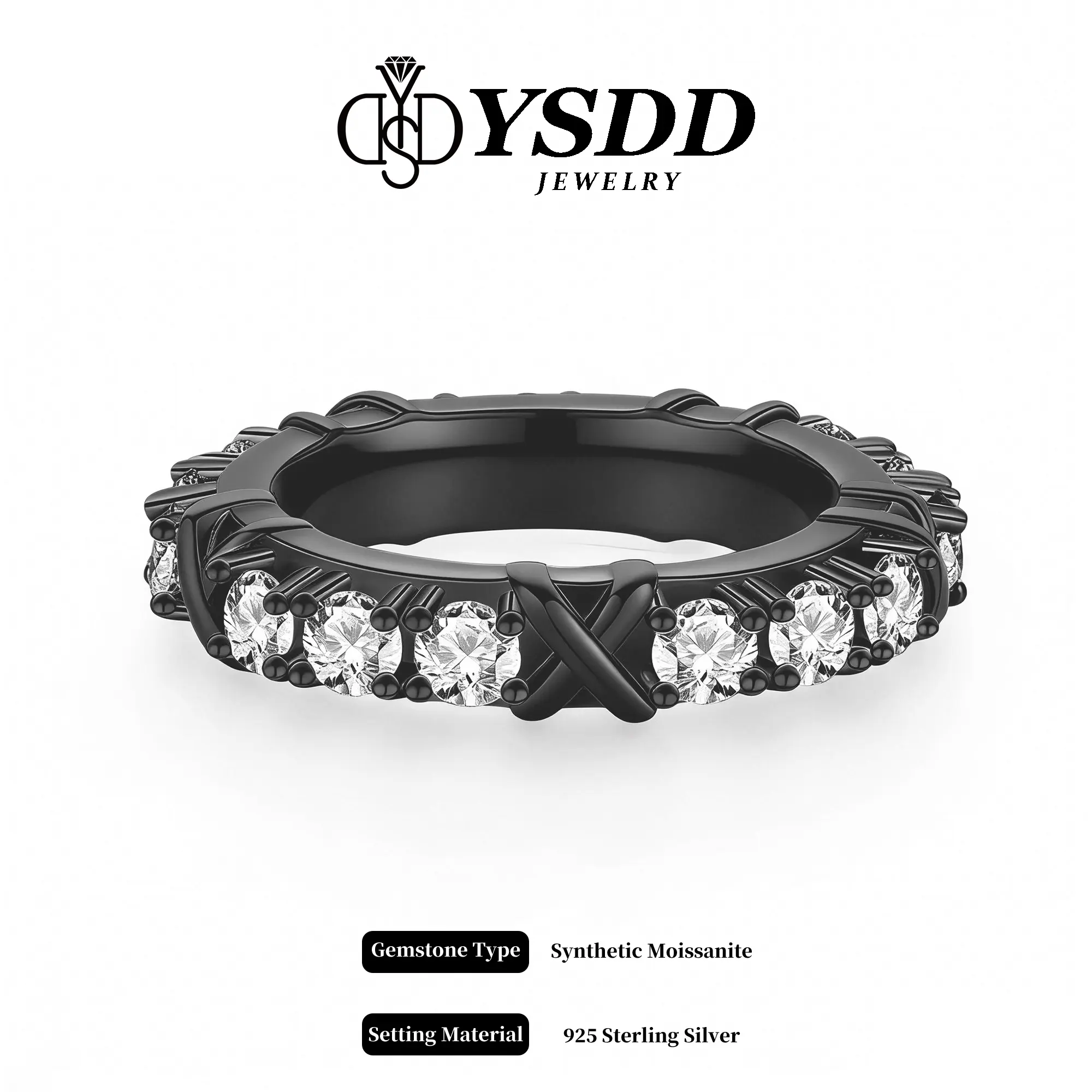 5. 【Livestream-10 Black X Band】New 4mm Eternity X Band Synthetic Moissanite Rings in 925 Sterling Silver clear/black stone