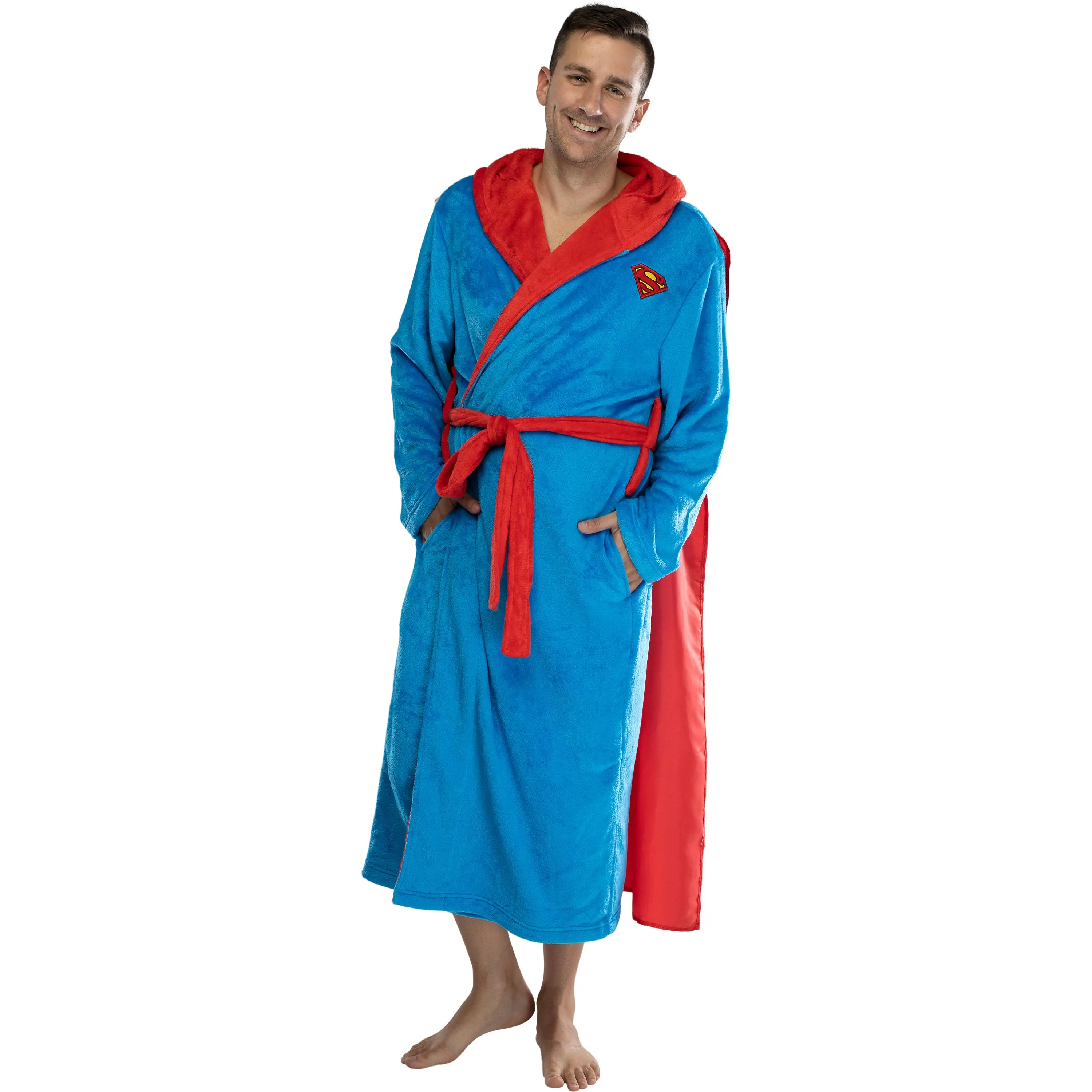 Now you can feel like your own superhero in our DC Comics robes styled to make you feel like Superman (the Man of Steel), Batman (the Dark Knight), or The Flash (AKA the Scarlet Speedster). These robes are crafted from a soft polyester fabric making these robes easy to care for. Please machine wash with like colors in cold water and tumble dry low to help maintain the vibrant colors and softness of these robes. These robes are great for lounging around the house, as a cover-up poolside, or at the beach. They even make a great addition to a casual costume for trick-or-treating or for your next fan convention or event. Each hooded bathrobe features a detailed embroidered design and a front tie belt for secure closure. Our Batman and Superman styles come with a detachable cape, so you can get in on the fun and become your favorite Justice League hero. DC COMICS MERCH - These robes are great for lounging around the house, as a cover-up poolside, or at the beach. They even make a great addition to a casual costume for trick-or-treating or for your next fan convention or event. SUPERHERO BATHROBE - These bathrobes are available in 3 different superhero styles! Choose from Superman (the Man of Steel), Batman (the Dark Knight), or The Flash (AKA the Scarlet Speedster). SUPERHERO DETAILS - Each hooded bathrobe features a detailed embroidered design and a front tie belt for secure closure. Our Batman and Superman styles come with a detachable cape, so you can get in on the fun and become your favorite Justice League hero. EASY CARE FABRIC - Robes are made of a soft polyester fabric making these robes easy to care for. Please machine wash with like colors in cold water and tumble dry low to help maintain the vibrant colors and softness of these robes. ONE SIZE FITS MOST - These robes are designed as a "one size fits most". For best fit, please refer to our sizing chart found in this listing.