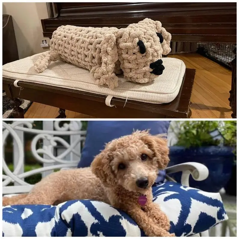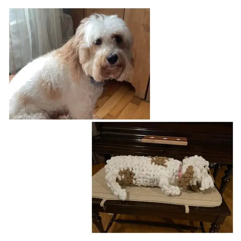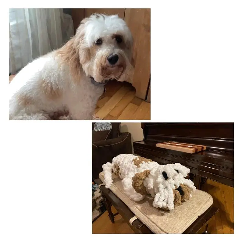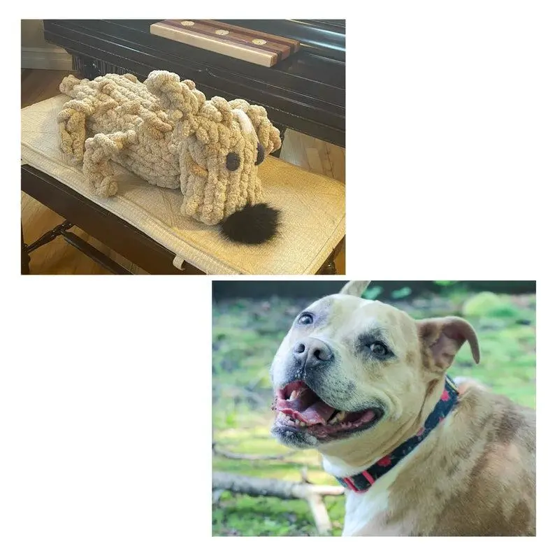 Introducing our Chunky Chenille Custom DogHandmade Pillow, a delightful way to honor and celebrate your beloved furry friend. Made with love and care, this personalized dog pillow stuffed animal captures the likeness of your best friend, creating a lasting keepsake that brings joy and comfort.To create your custom dog pillow, simply send us a photo of your dog, and our skilled artisan will meticulously recreate their adorable features using chunky chenille fabric. Each detail from their expressive eyes to their unique markings, is carefully crafted to capture their essence and personality. Measuring over 18 inches long, this handmade pillow is a substantial and huggable size, perfect for snuggling and displaying with pride. Whether you choose to showcase it on your bed, couch, or as a decorative piece in your living space, it is sure to be a conversation starter and a cherished memento. The Chunky Chenille Custom Dog Handmade Pillow makes a thoughtful gift for any dog lover in your life. Surprise them with this personalized tribute to their furry companion, a token of love that will be treasured for years to come.If you have any questions or specific requests, feel free to message us. We are here to assist you in creating a unique and special piece that captures the essence of your beloved dog.Celebrate the bond between you and your furry friend with our Chunky Chenille Custom Dog Handmade Pillow.Order now and let us bring your dog's lovable charm to life in a soft and cuddly form.
