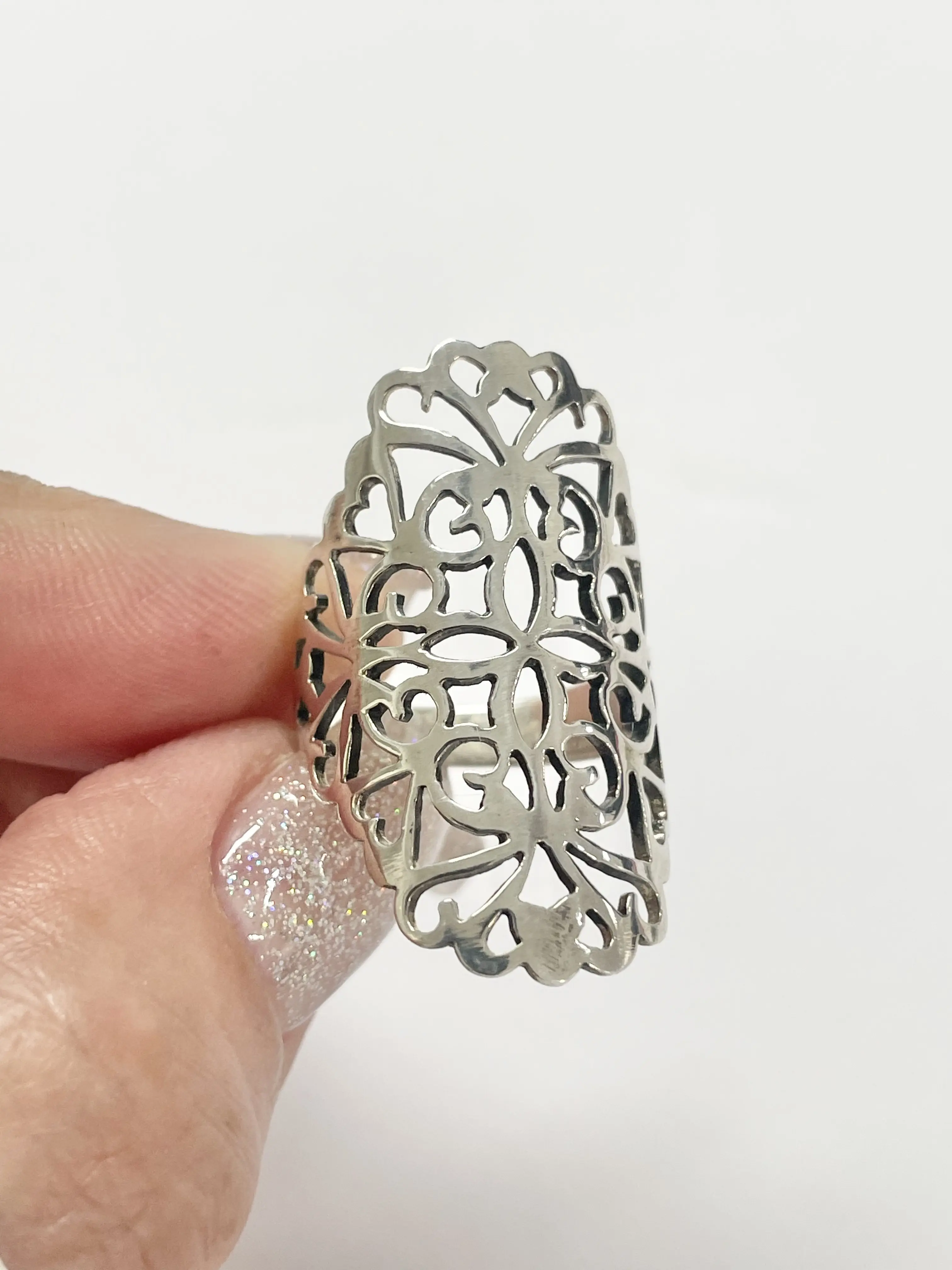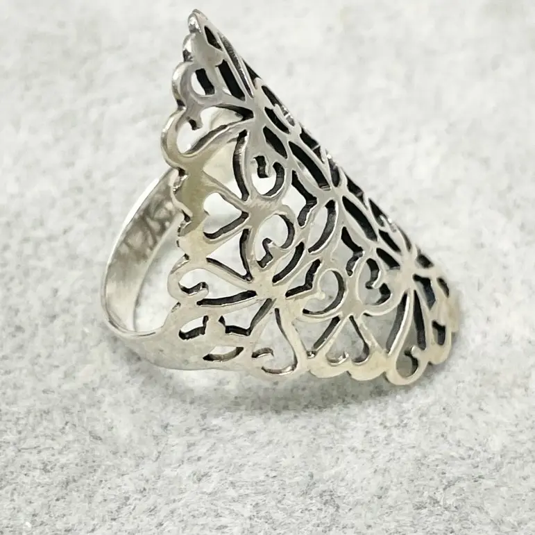 Sterling Silver 925 Long Ring with Decorative Design and Elegant Finish Engagement Wedding Bands