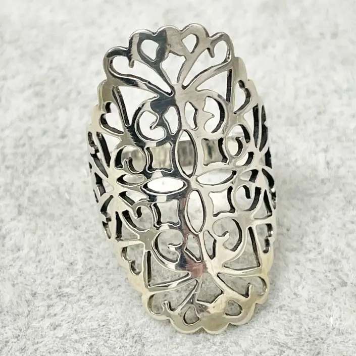 Sterling Silver 925 Long Ring with Decorative Design and Elegant Finish