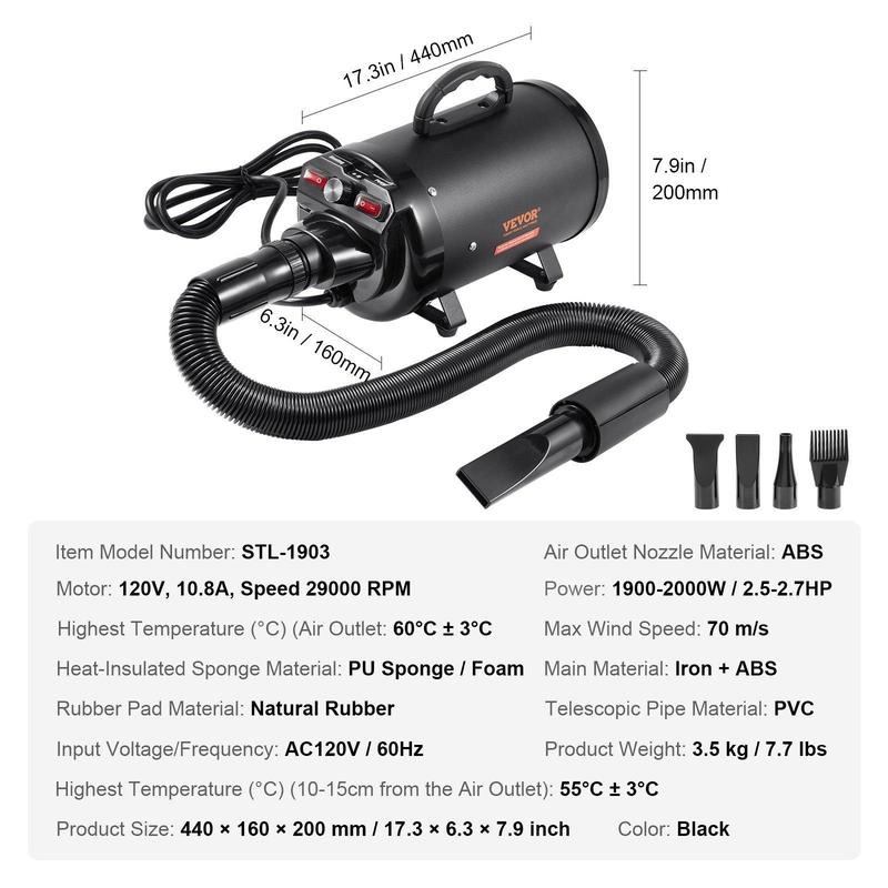 The adjustable extendable hose ensures thorough care of all your pet's parts, and the four different nozzles cater to various pet sizes and body areas. This makes drying more efficient. Use it more comfortable.