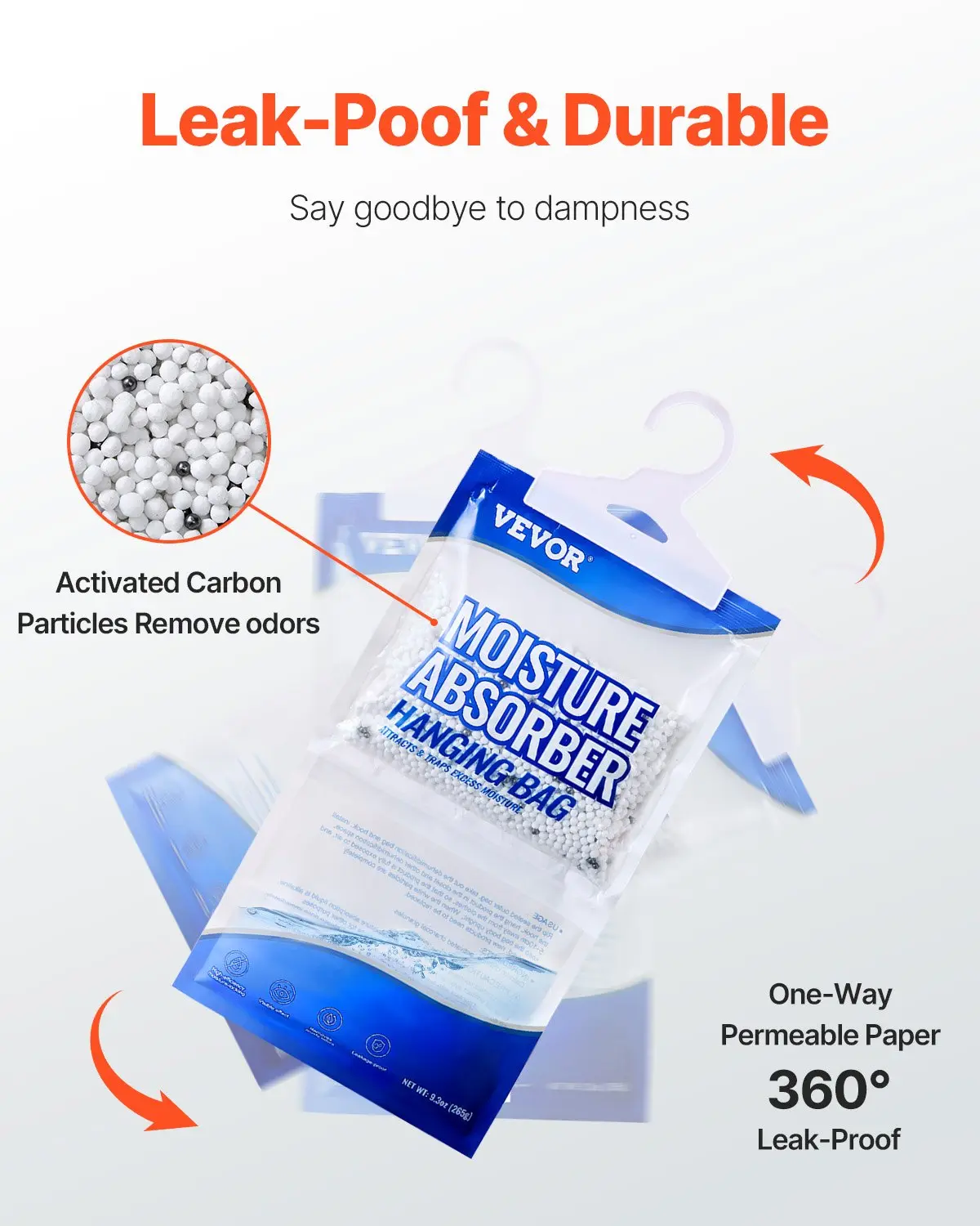 ·Moisture & Leak Prevention: The added activated charcoal in these dehumidifier bags effectively absorbs dampness and helps prevent unpleasant smells, while the high-quality moisture-locking paper ensures no leakage, giving you a hassle-free experience.