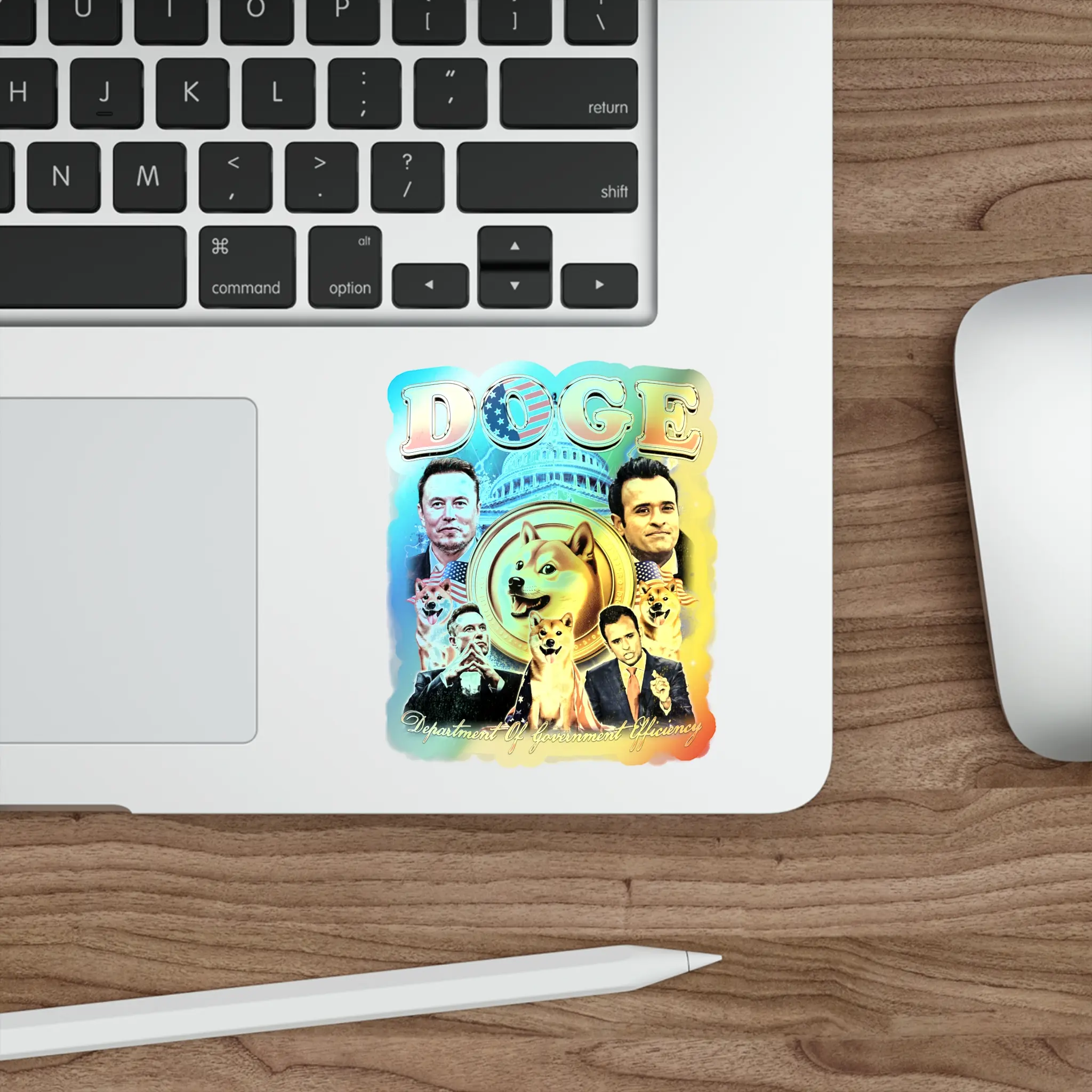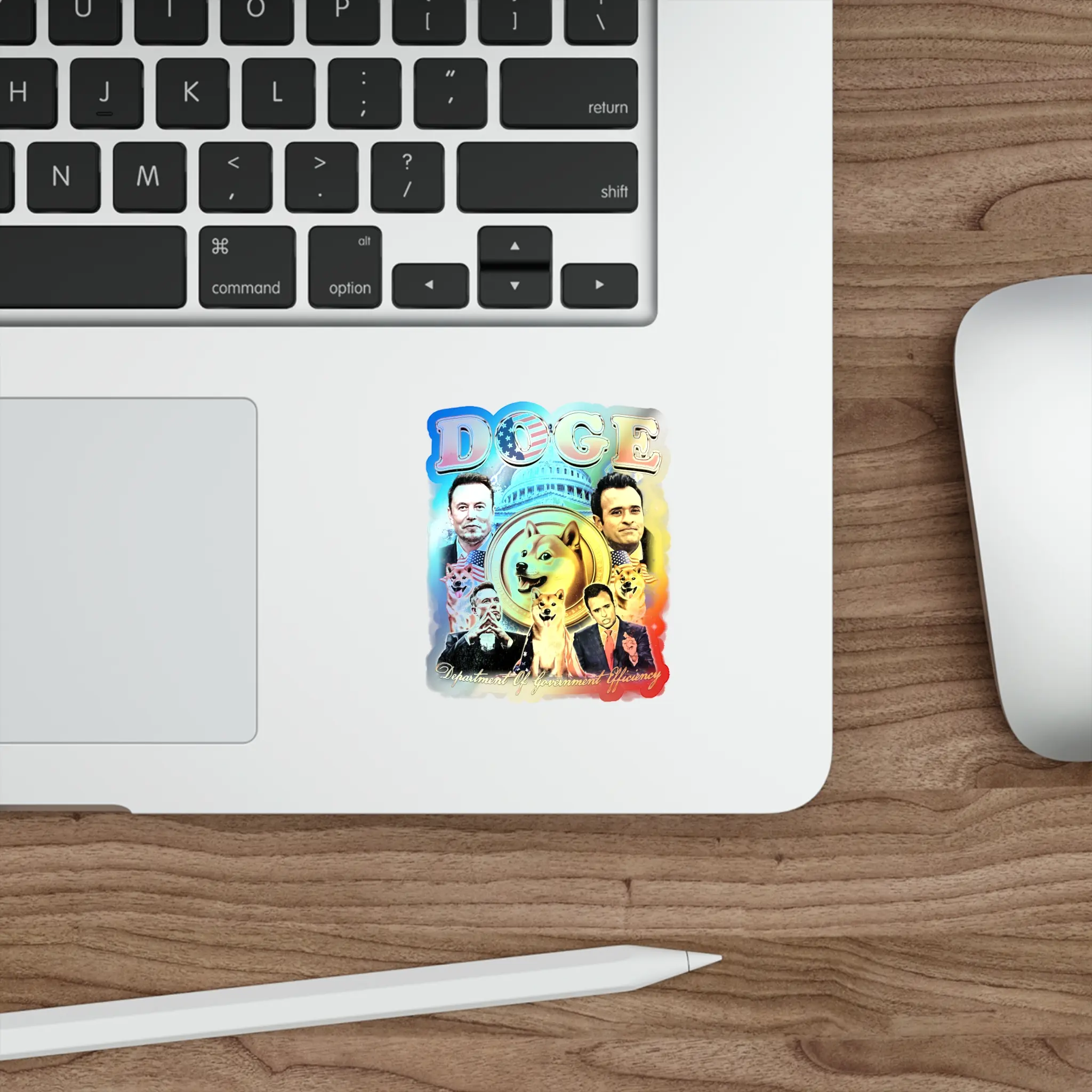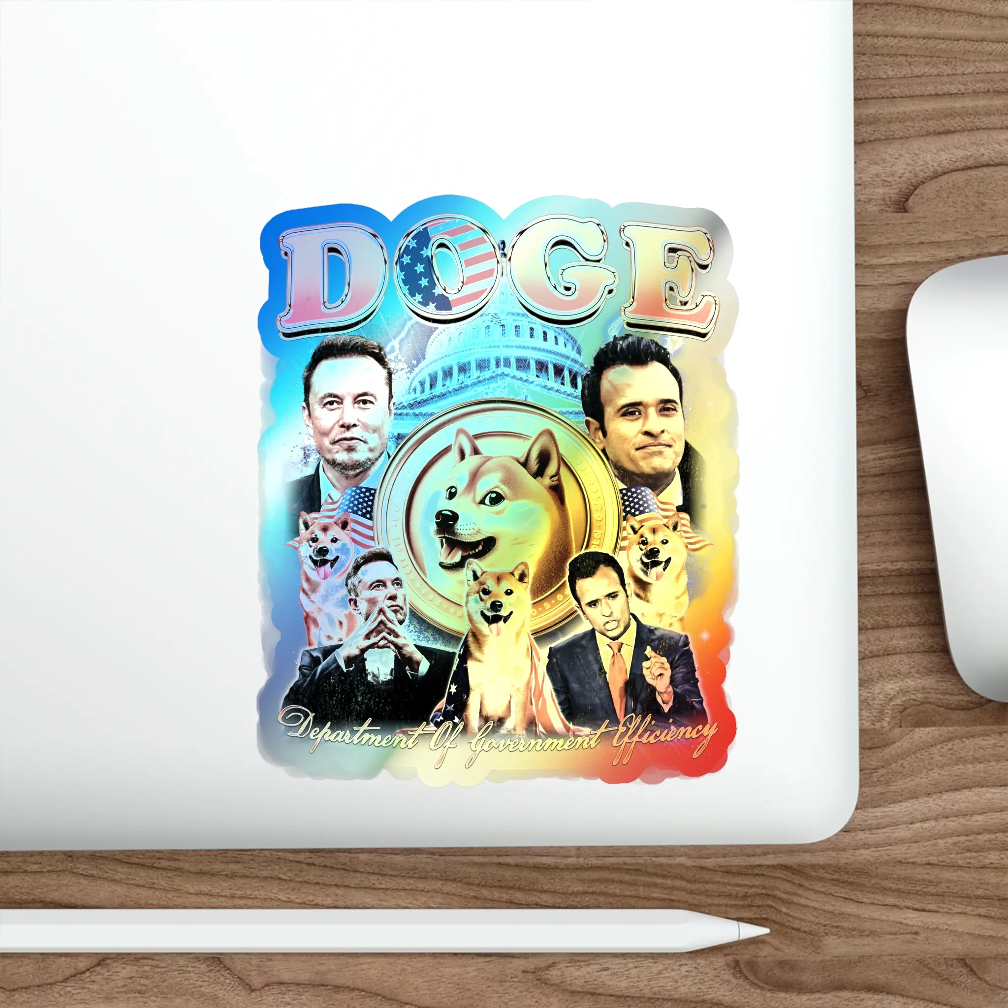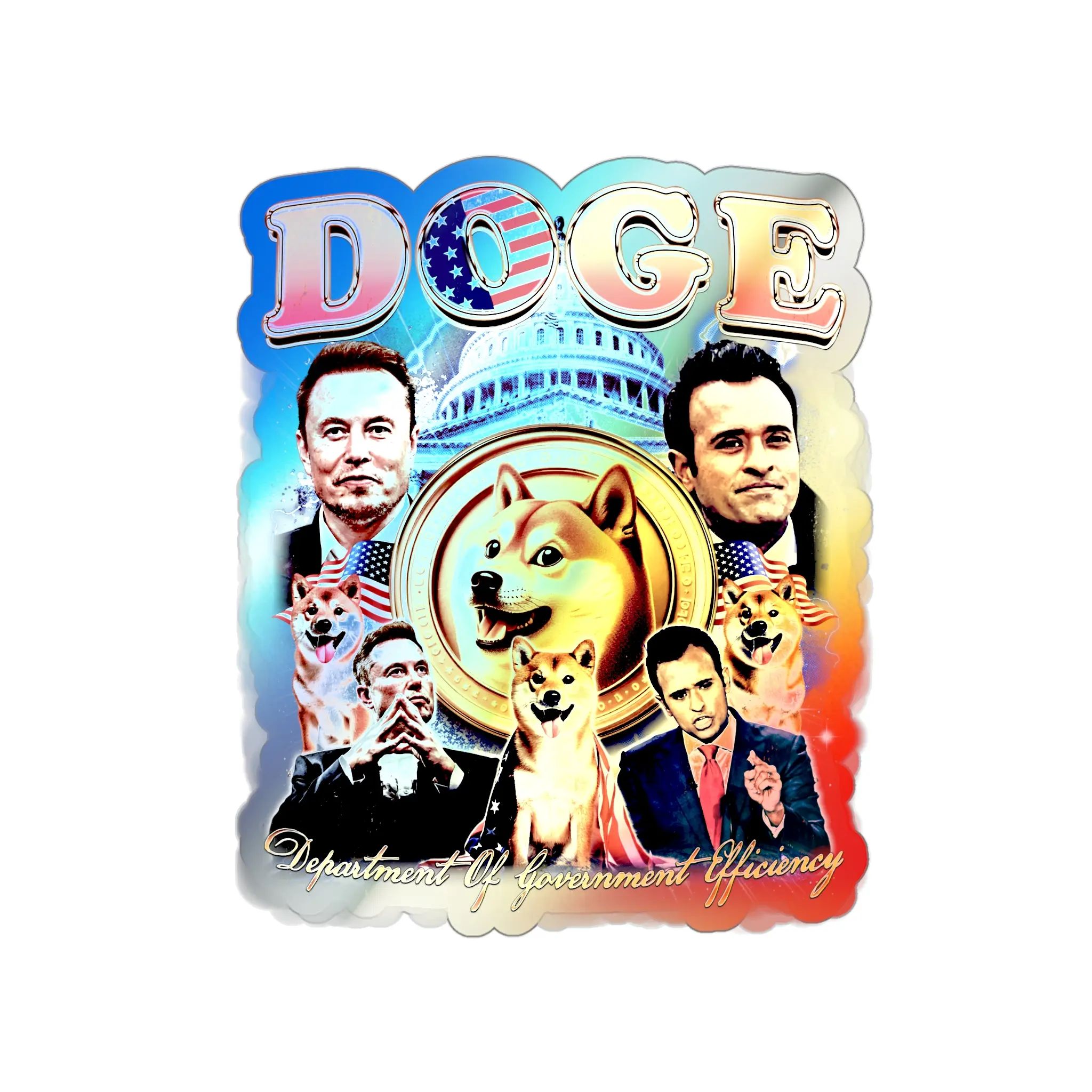 Holographic Sticker Elon Musk Vivek Ramaswamy DOGE Coin, Die-Cut Decal for Laptop, Hydroflask, Phone, Water Bottle, Custom Sticker
