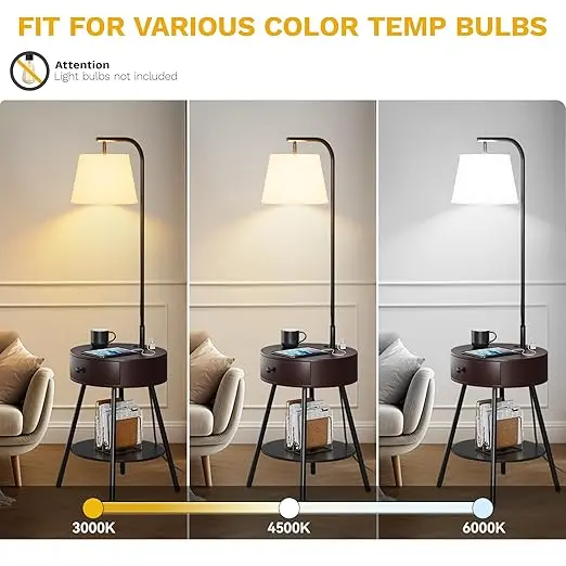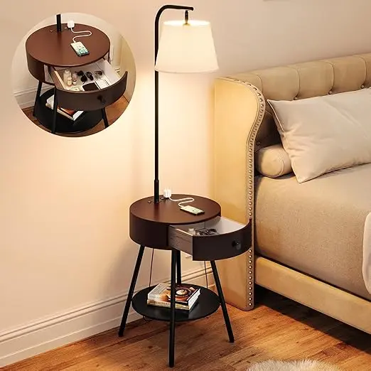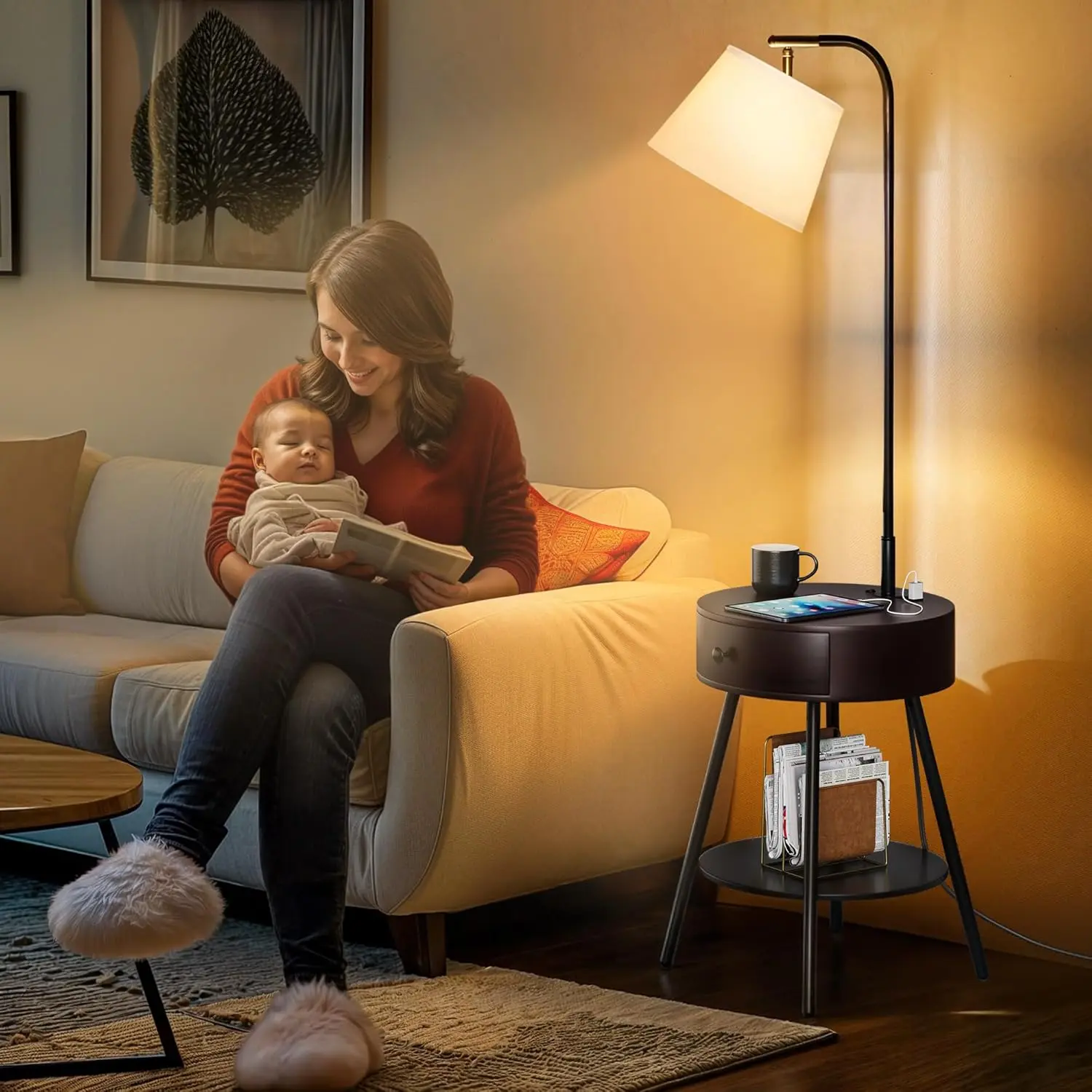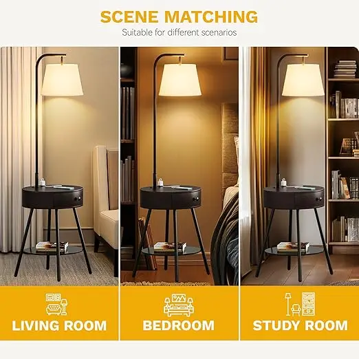 Versatile and Convenient: The DWVO floor lamp doubles as a functional piece of furniture, featuring a table with drawers and shelves for storage and display; Fit for your living room, bedroom, or study, the lamp's elegant design adds a touch of sophistication to any space