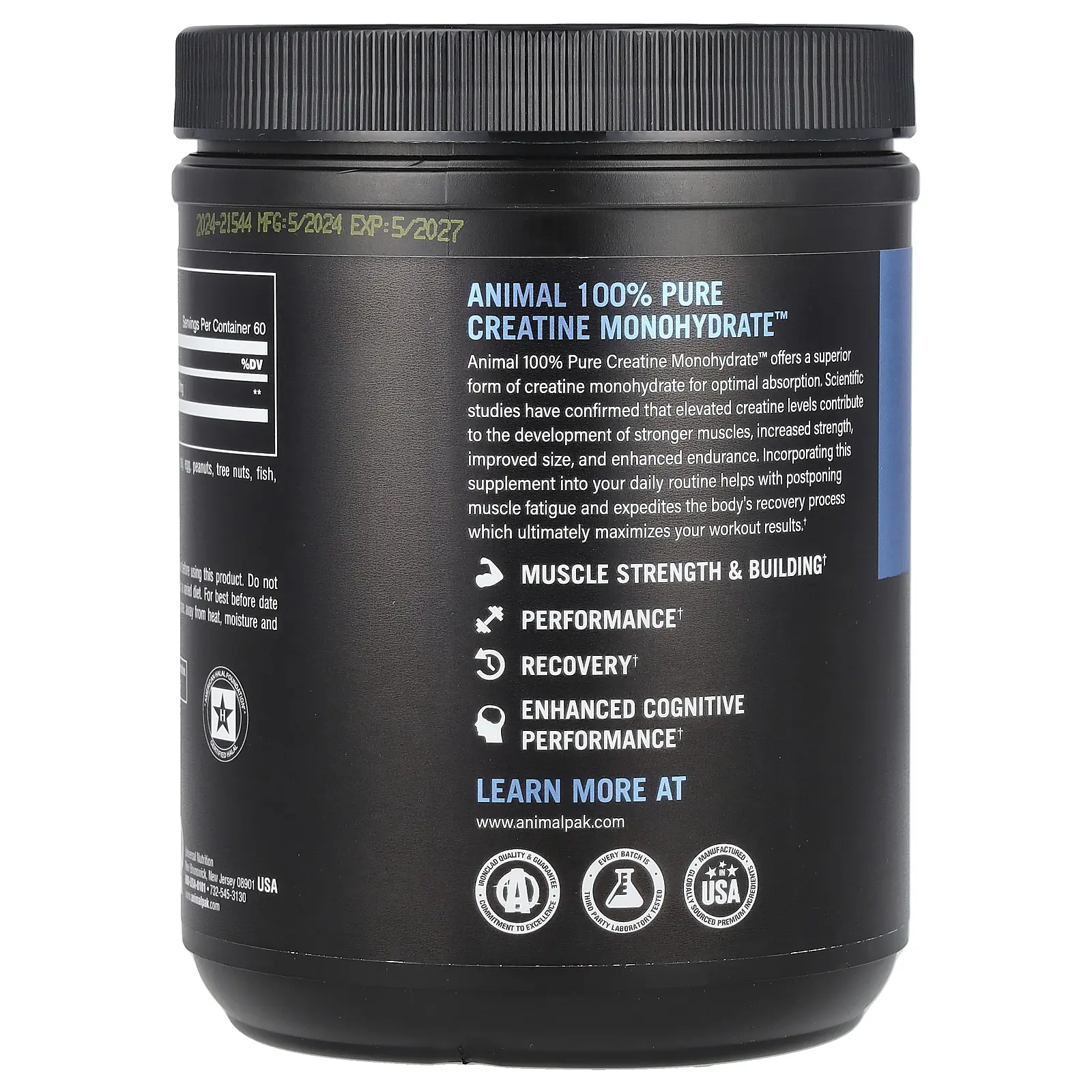 Animal 100% Pure Creatine Monohydrate™ Powder, Unflavored, 10.58 oz (300 g)