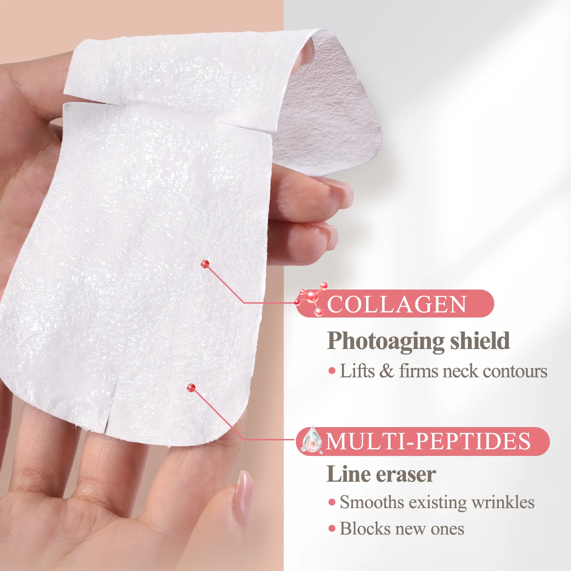 ¡Collagen Peptide Anti-Wrinkle Neck Mask: Infused with Collagen, Multi-Peptides, and Xylane, this neck mask set deeply hydrates and nourishes the skin, helping to reduce wrinkles while leaving the skin plump, hydrated, firm, and smooth.