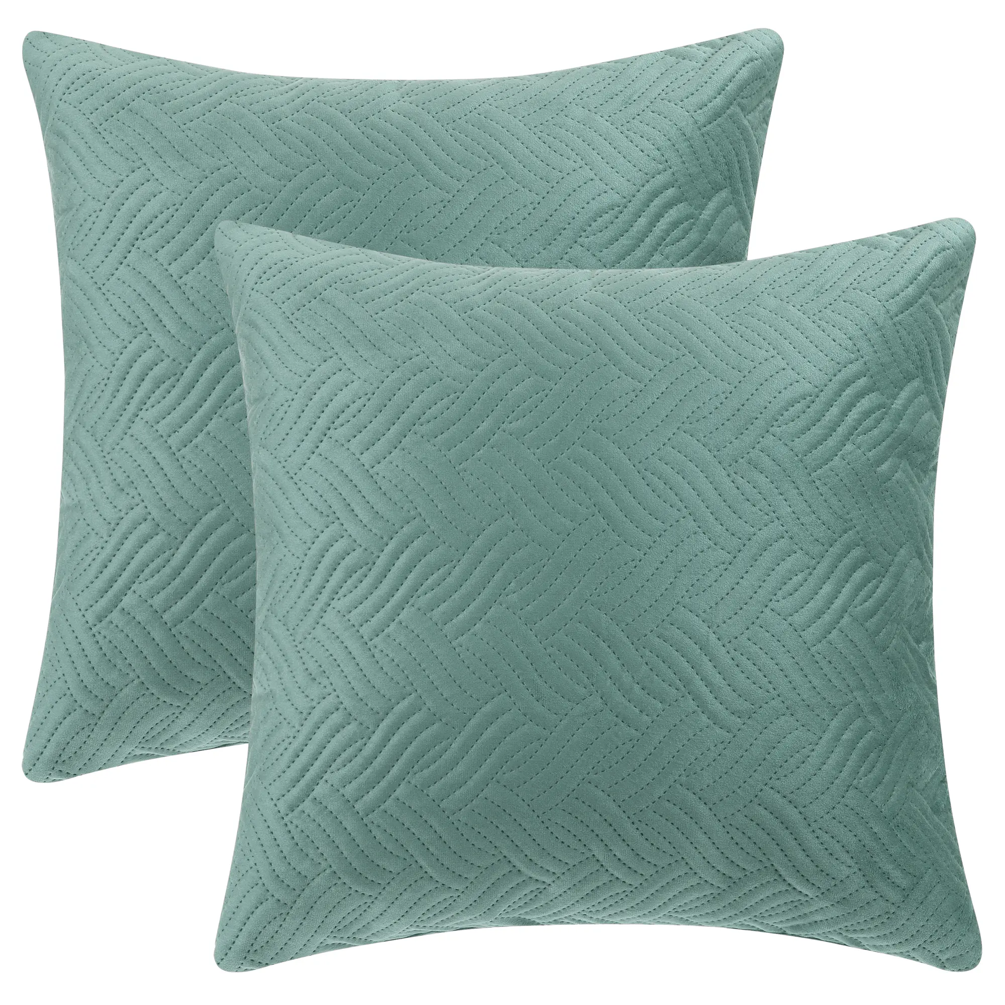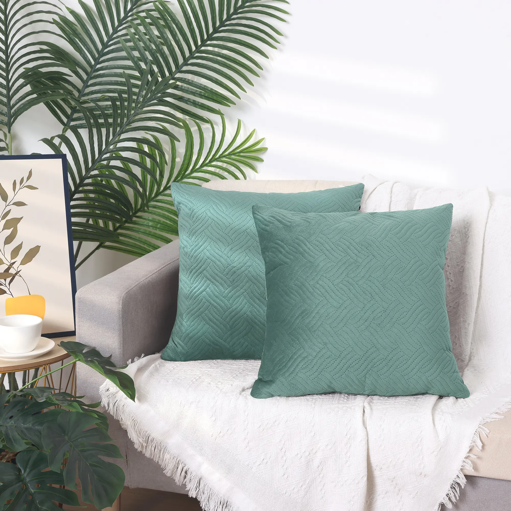 REGALWOVEN Velvet Knitted Throw Pillow Covers, Pack of 2 Spring Decorative Pillow Cases Square Soft Cushion Covers for Bed Sofa Bedroom Living Room Home Decor 18 x 18 Inch Light Green