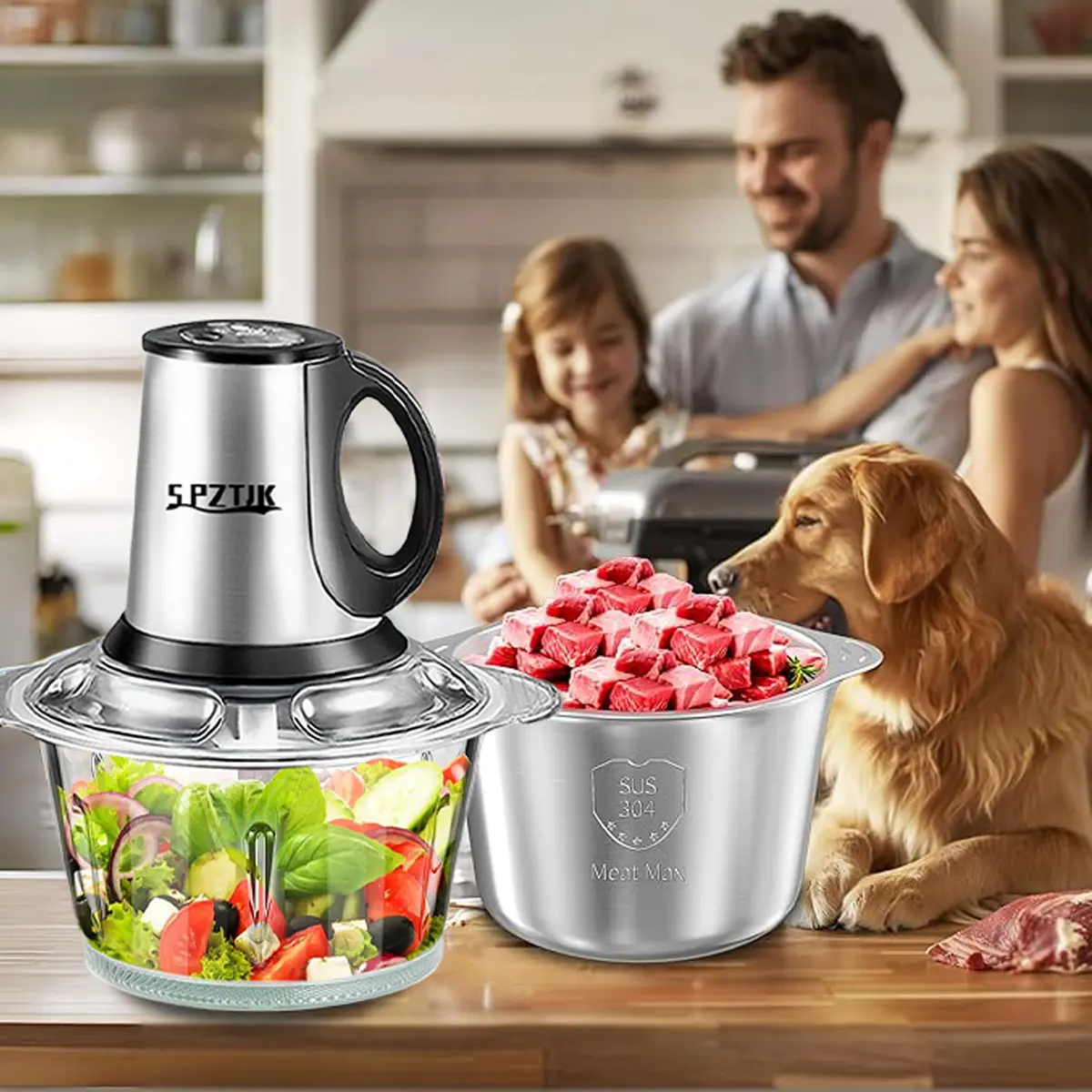 Electric food processor vegetable chopper 2x8cup bowls 2 blades Small Food chopper Electric Meat grinder for home use,Mincing, and Puree for kitchen aid, baby foot, pet food
