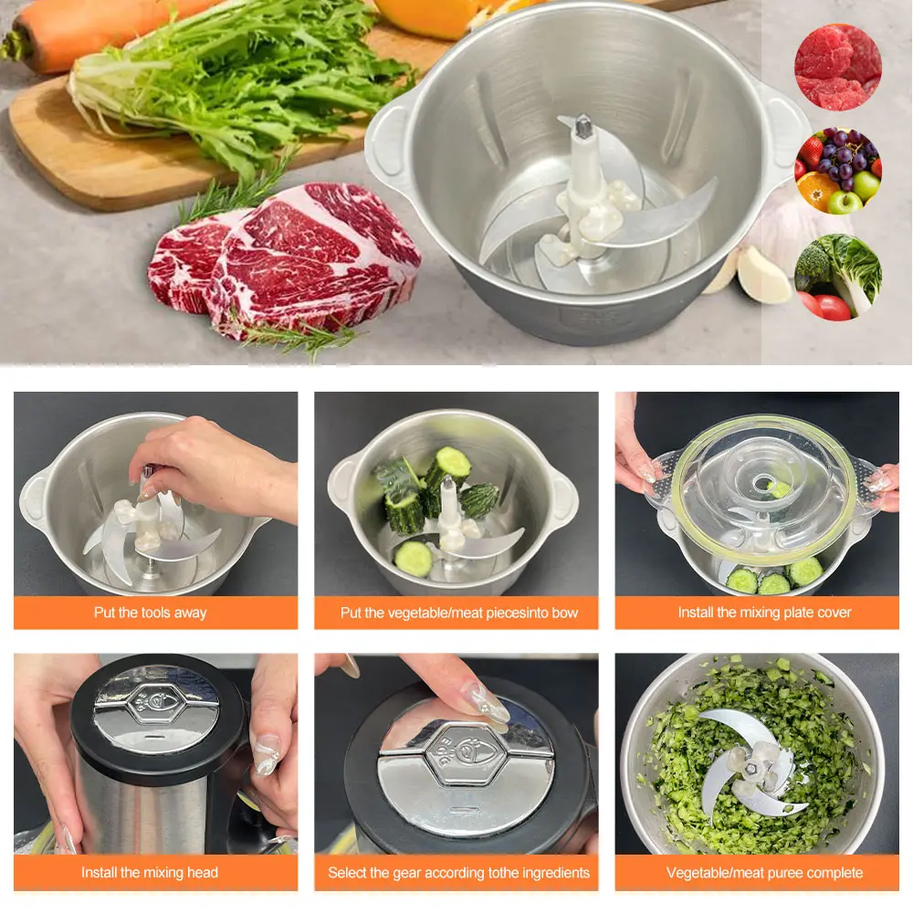 Powerful Grinding Performance: The 2L Capacity 300w Meat Grinder boasts powerful grinding capabilities, Whetheryou're preparing seasonings, meat, juice, or coffeepowder, it's just a simple operation away. making it a reliable tool for home use and culinary excellence.