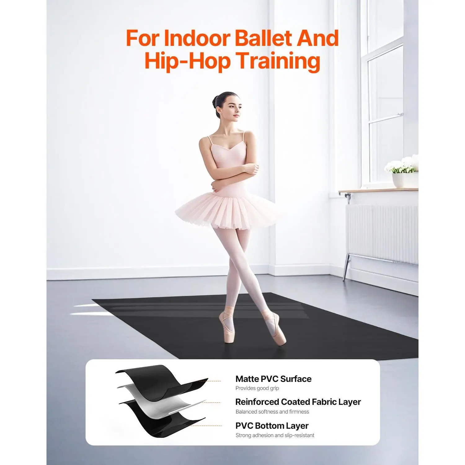 • Non-Slip & Waterproof: The smooth surface is coated with a waterproof, anti-slip layer, making it perfect for hip-hop, ballet, yoga, and other workouts. It offers excellent protection for your body and ensures safety during exercises. The 0.06-inch thickness protects your original floor while keeping the noise down, so you won’t disturb your neighbors.