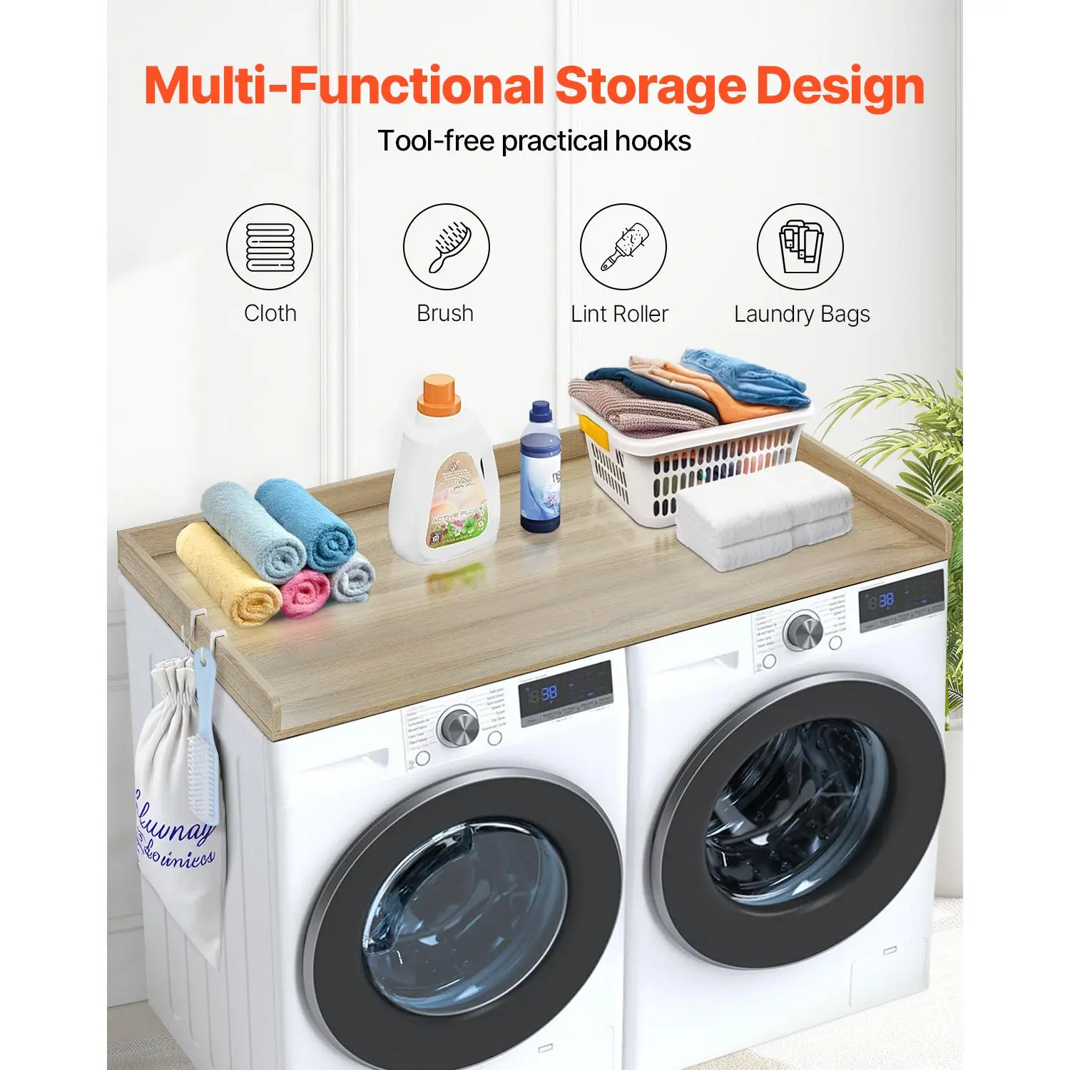 • Multifunctional Hook: This washer dryer countertop features side hooks, perfect for hanging everyday items like cloths, lint rollers, and more. Convenient to access and keeps everything organized, ensuring a clean and tidy look.