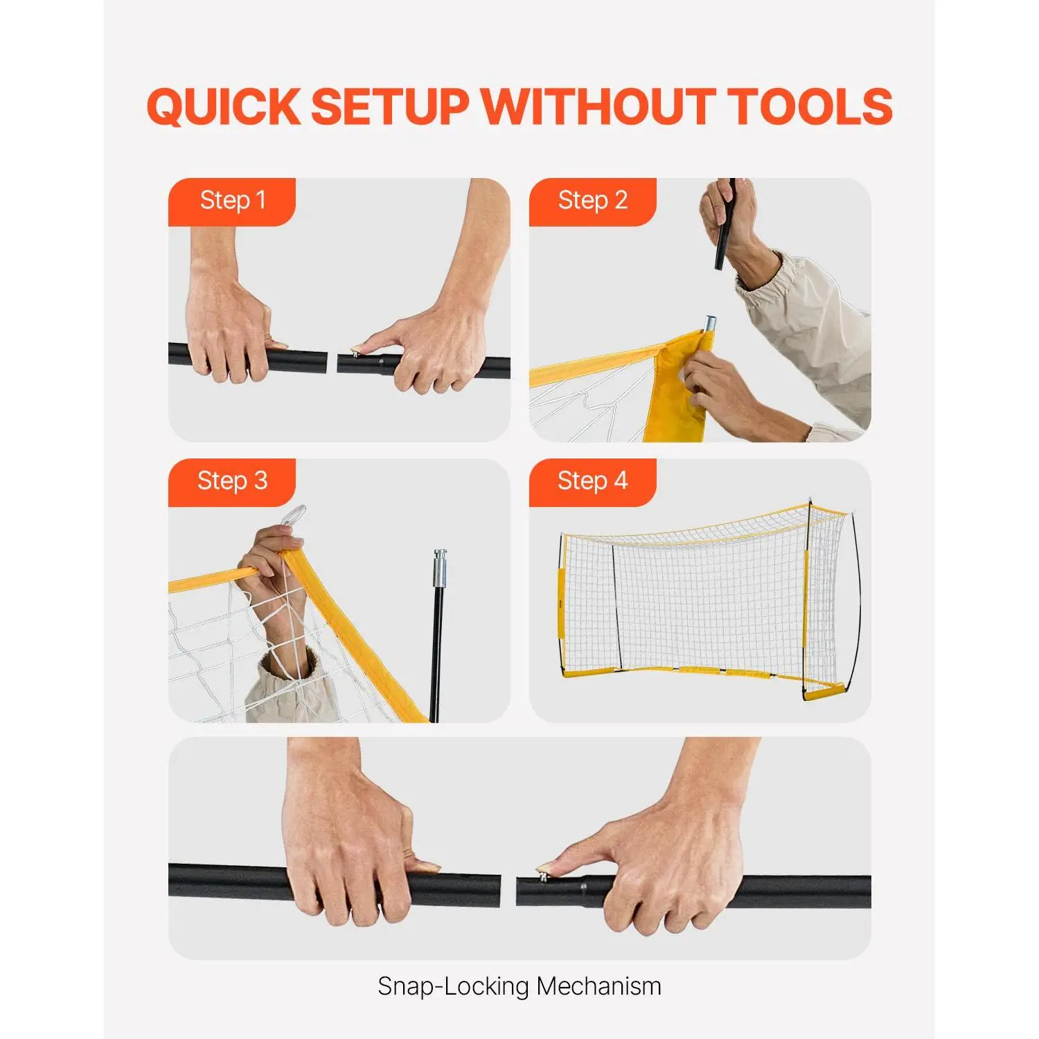 • Quick Setup Without Tools: Setting up this training soccer goal is a breeze, thanks to its snap-locking mechanism. You can have your goal ready for action in no time, without the need for any tools or complicated assembly.