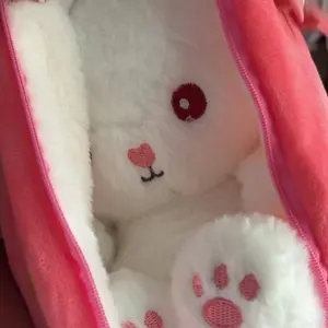 Precioso peluche de conejito que sale de una fresa, excelente material para el disfrute de los niños