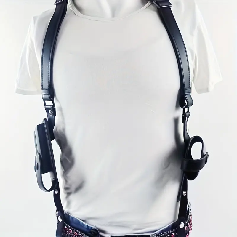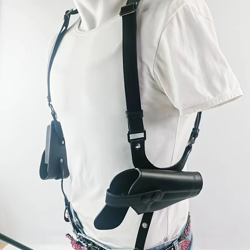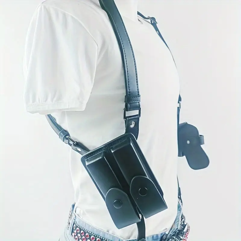 Universal Vertical Shoulder Strap Gun Holster, Suitable for Concealed Carry, with Dual Magazine Pockets - Fits Most Handguns