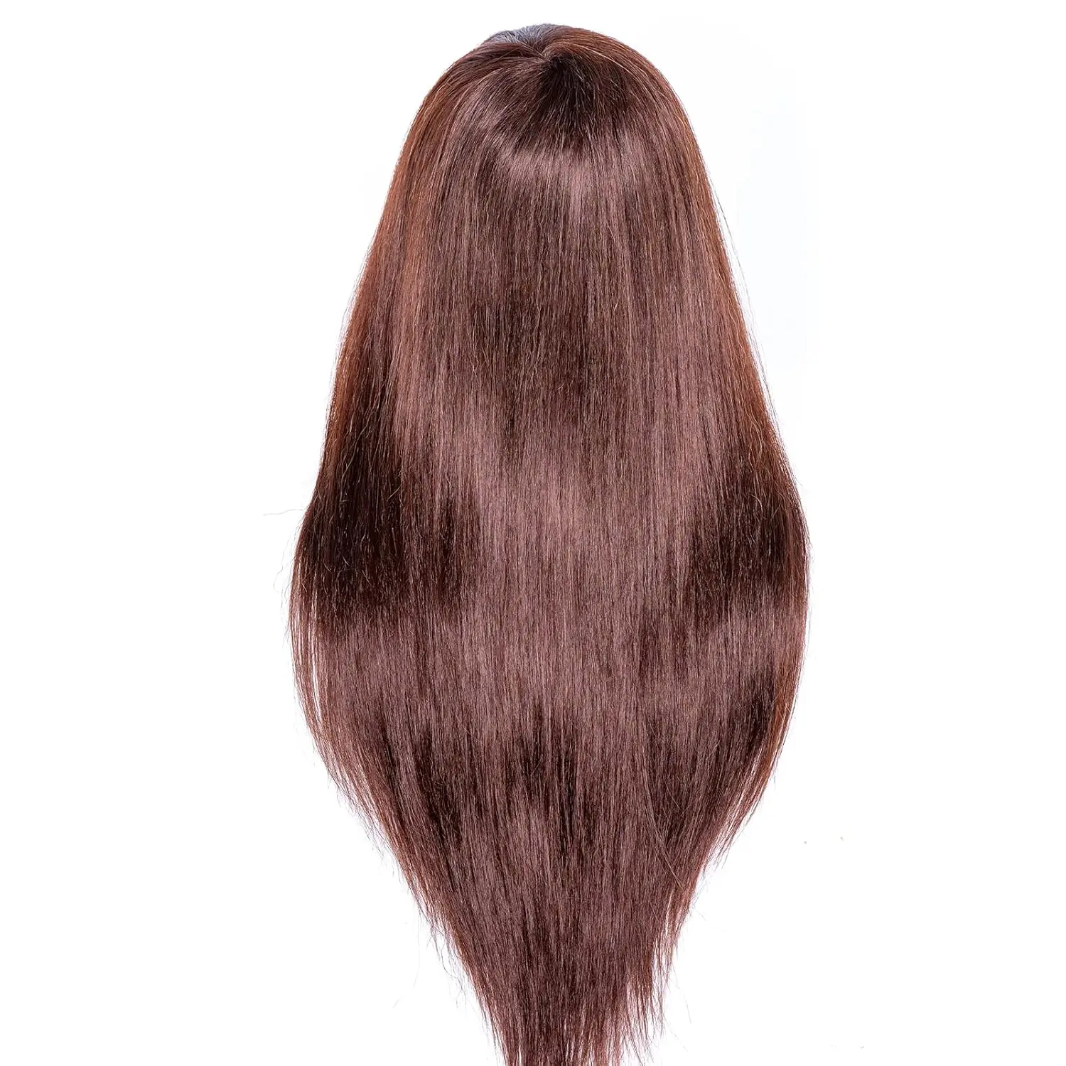 Mannequin Head with 60% Real Hair, Hairdresser Practice Training Head Cosmetology Manikin Doll Head with 9 Tools and Desktop Stand, Air Cushion Comb,Makeup On (Brown)