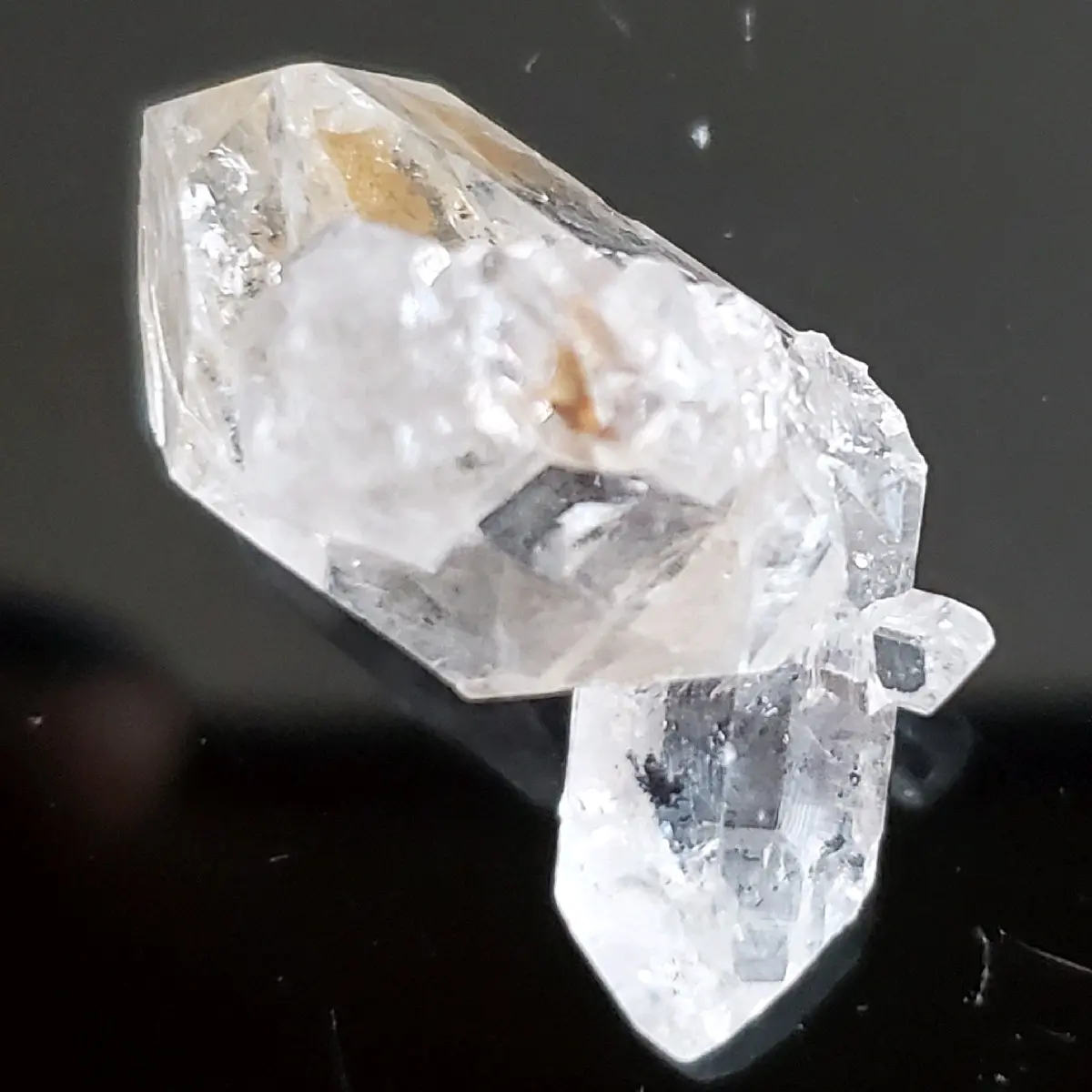 Gemological Properties- Herkimer Diamonds are actually brilliant double-terminated Quartz Crystals, (Sio2). These bright ‘diamond like’ crystals were originally discovered in Herkimer New York, USA.