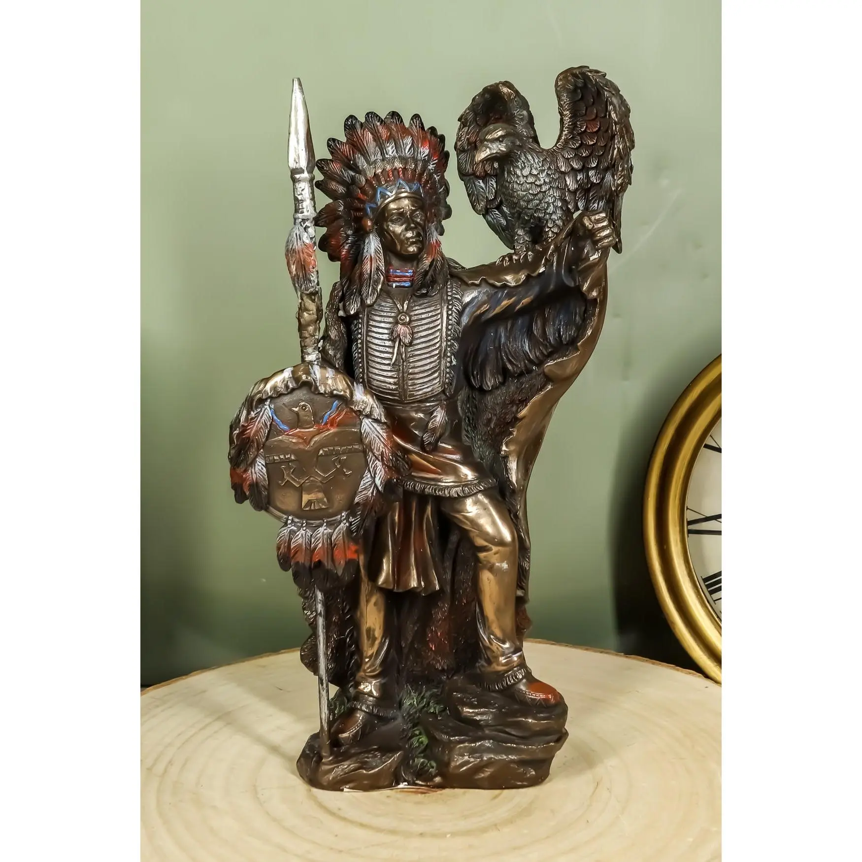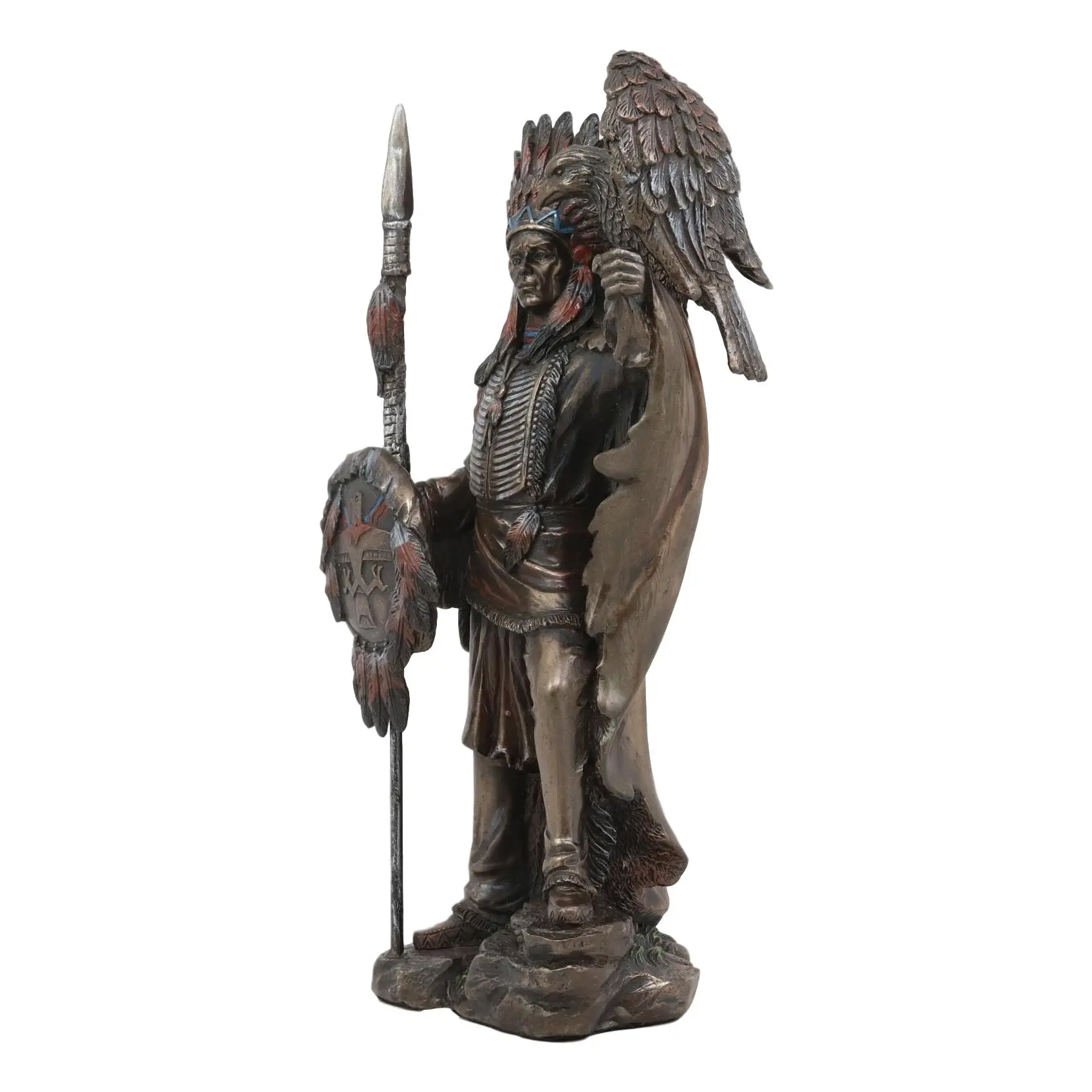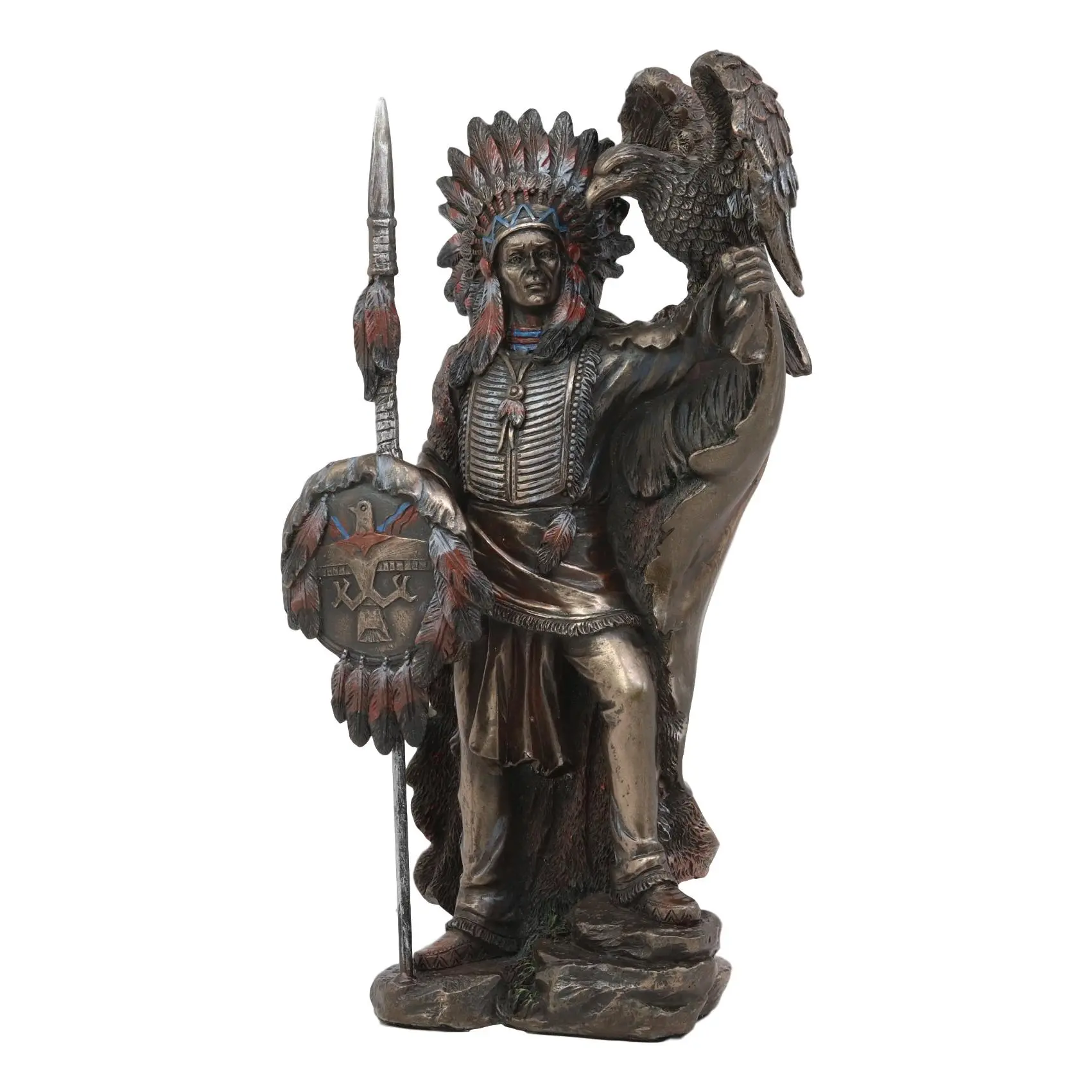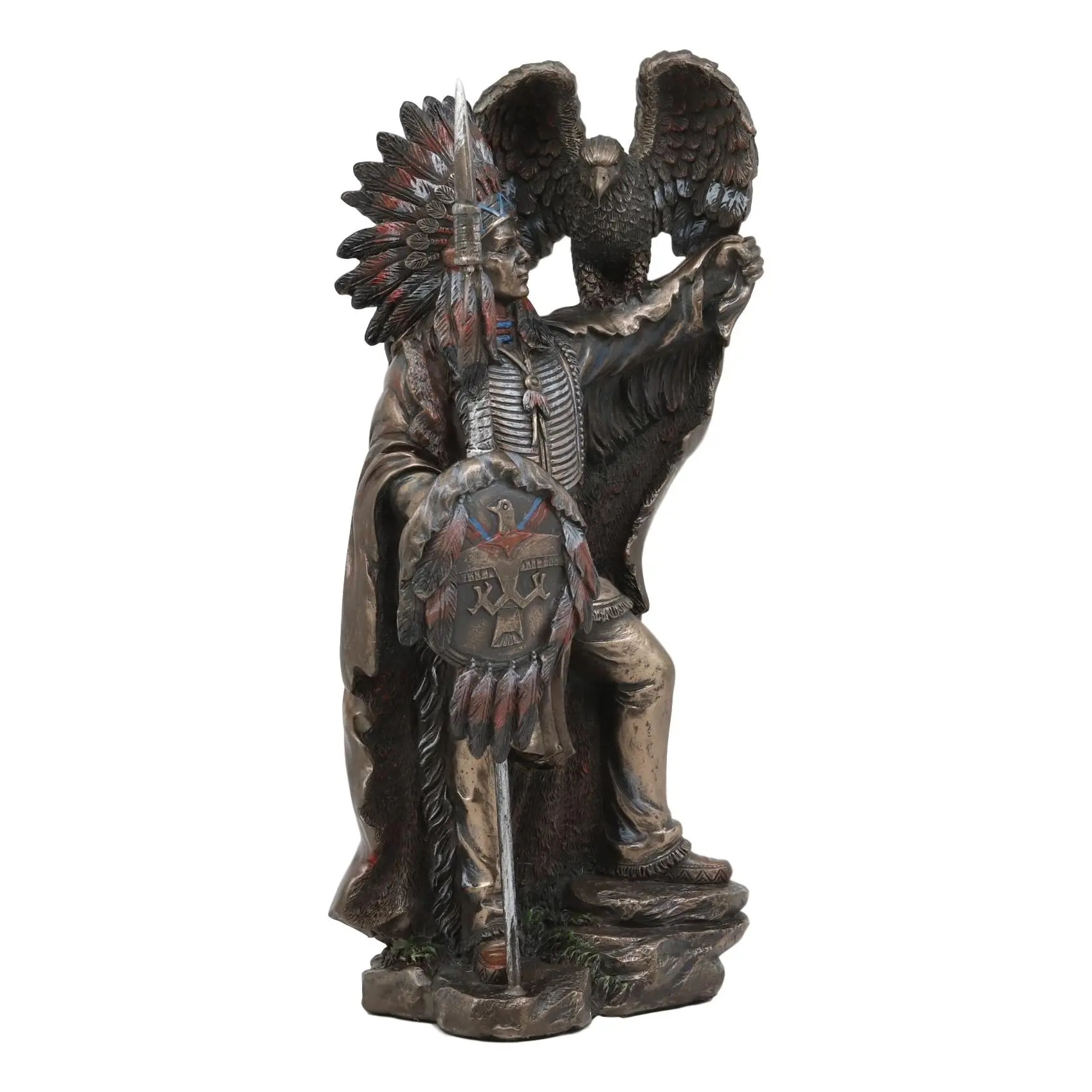 • This Indian Warrior Chief With Eagle Bird Statue is made of designer polyresin, hand painted and polished individually.
