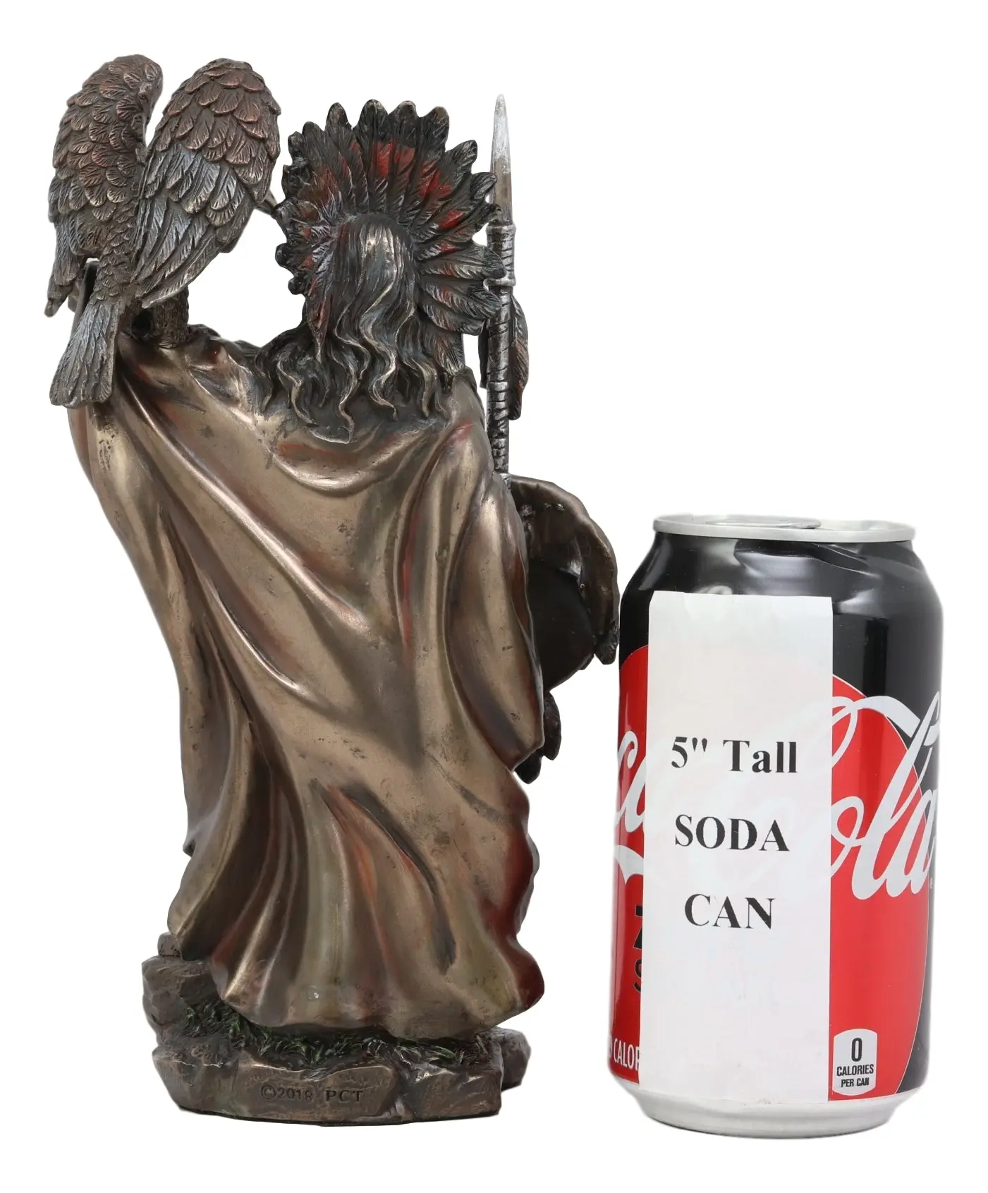 • This Indian Warrior Chief With Eagle Bird Statue measures 8.5"High, 4.75"Long and 3"Deep approximately. The statue weighs about 1 lbs and 9 oz.