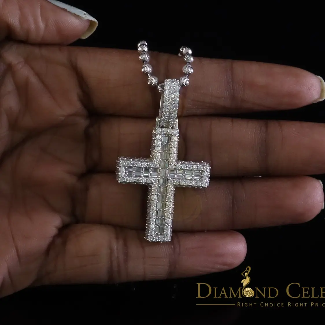 Diamondcelebritees White 925 Silver 4.50ct VVS D Clr Moissanite Baguette Cross Pendant Men/Women's